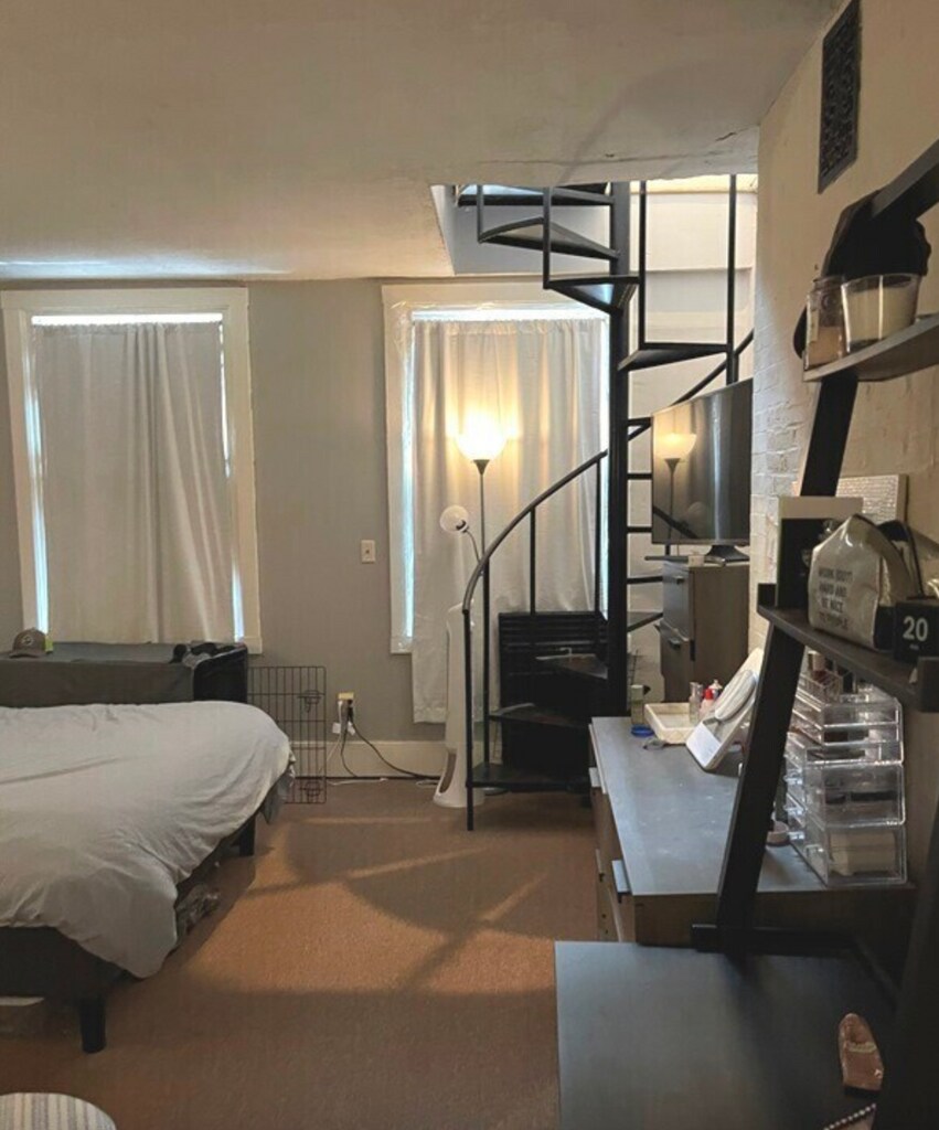Spacious 1 Bedroom Duplex, Hardwood Floors on the 1st floor Carpeted Bedroom, Cool Spiral Staircase Full Service laundromat just one block away