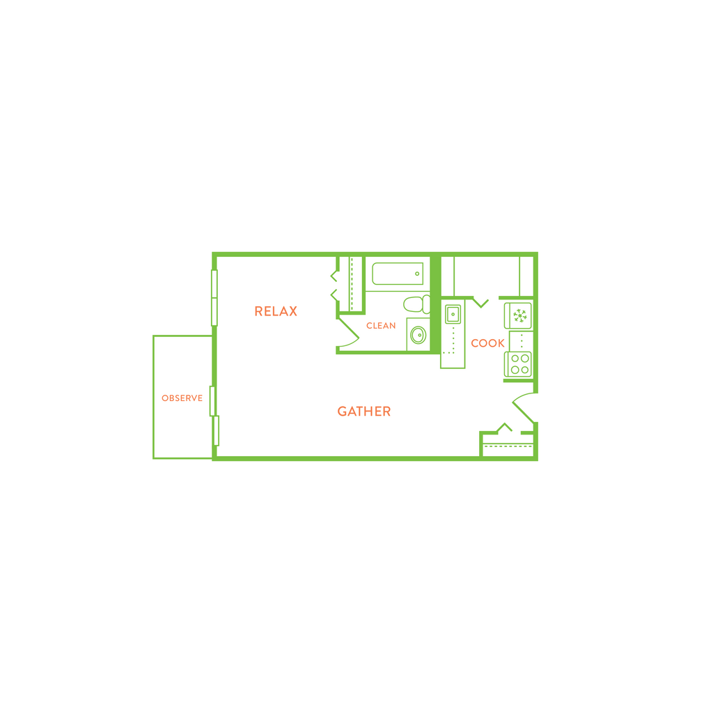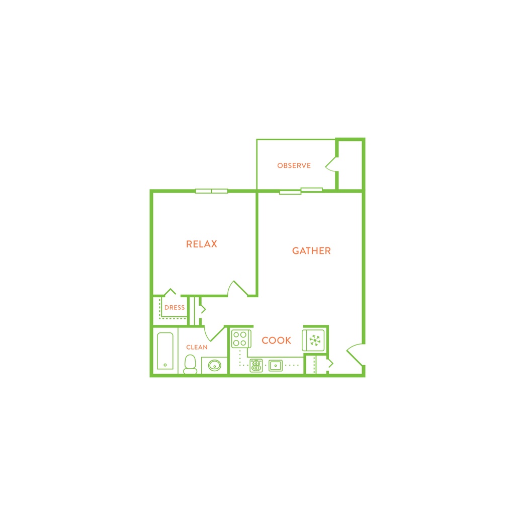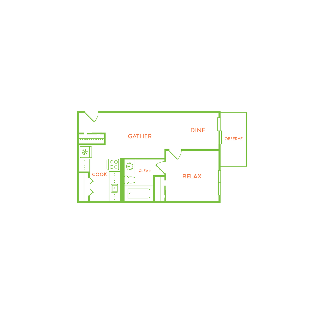 1 Bed, 1 Bath, 500 sq ftTotal Monthly PriceAvailable NowModel Gallery