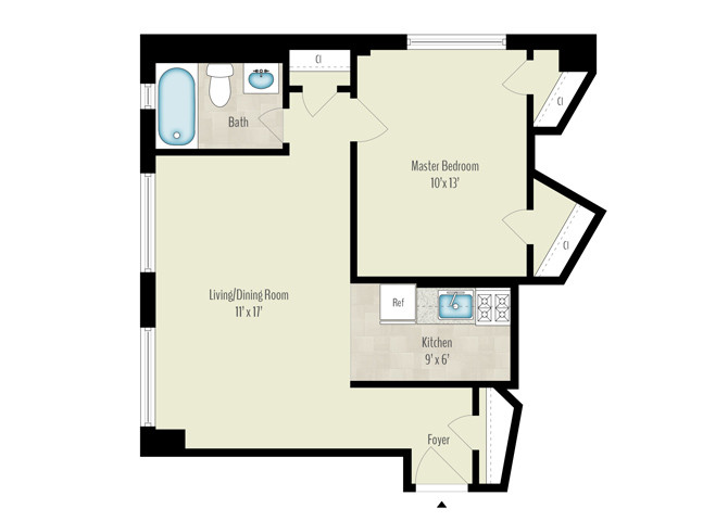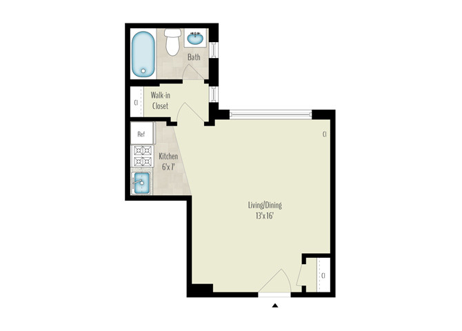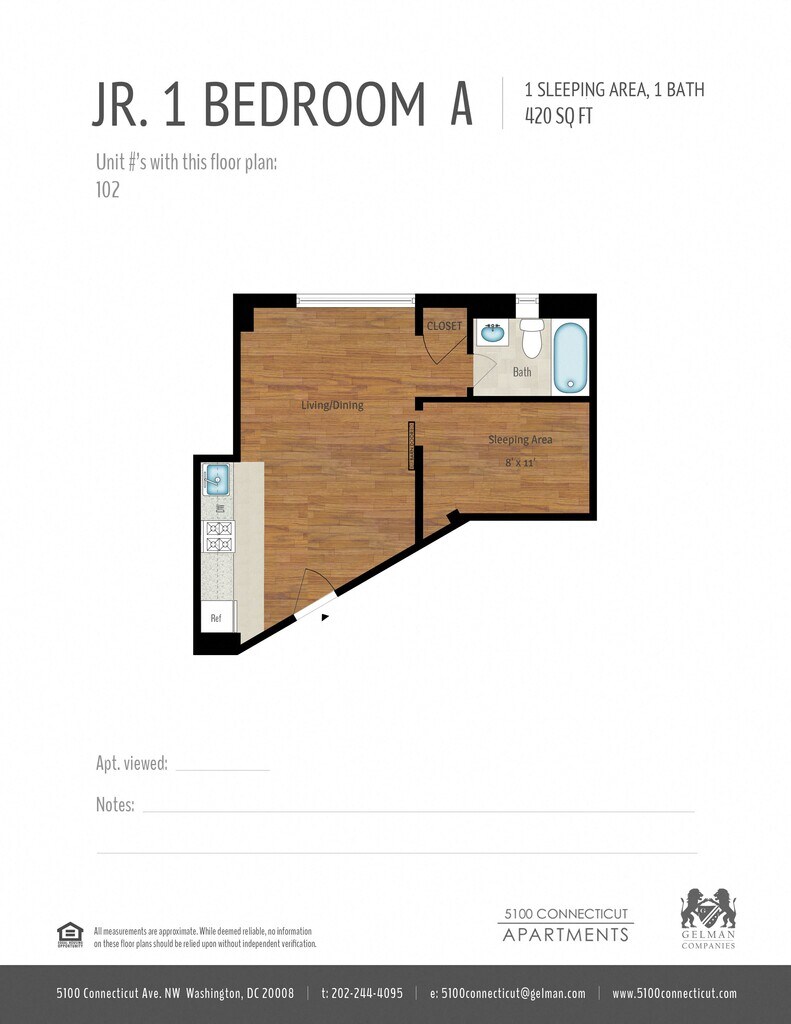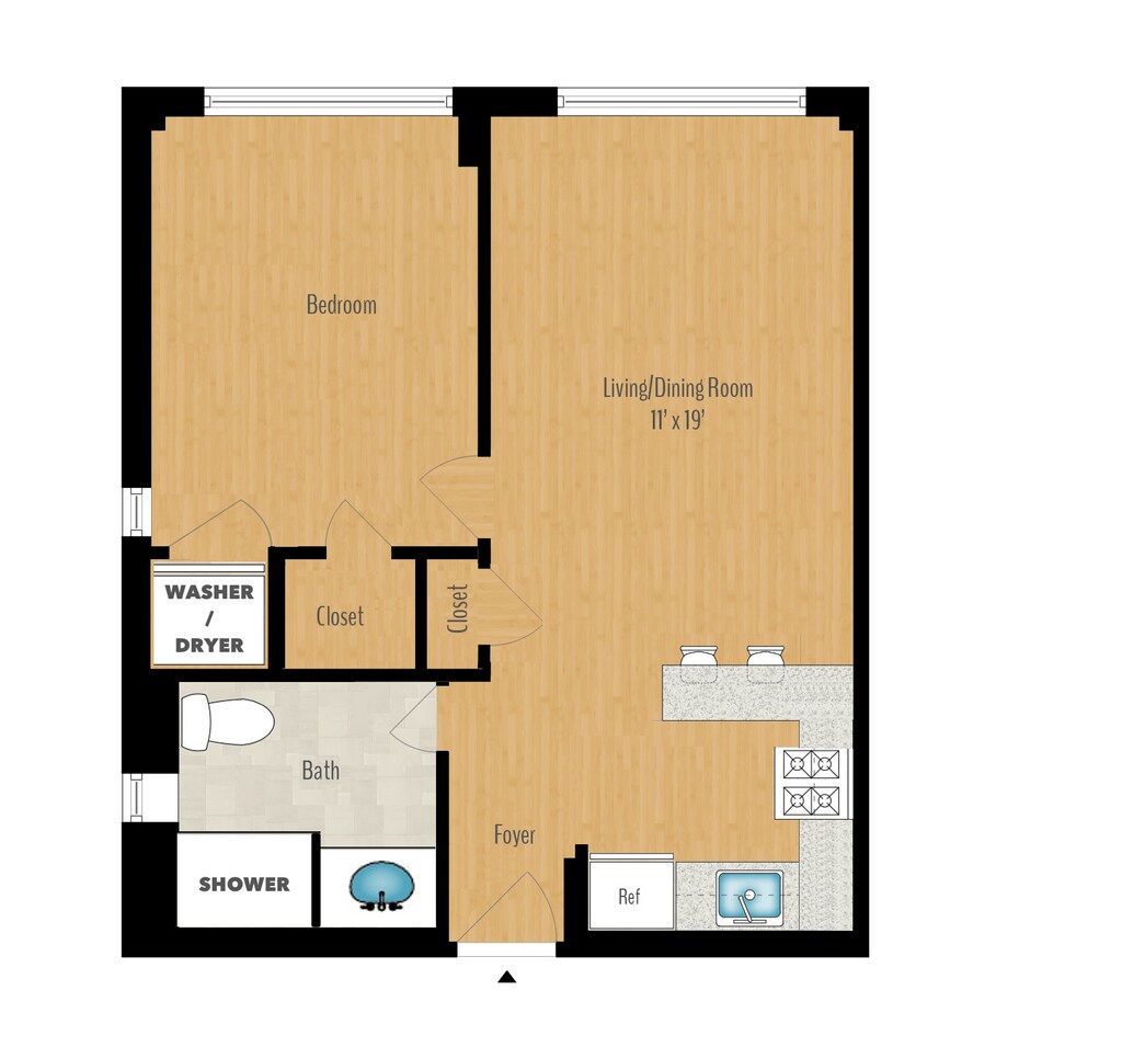 Junior 1-Bedroom - Floorplan 1 Apartment Unit: 0102Apartment Model: Junior 1-Bedroom$1,8951 Bedroom, 1 Bath, 420 sq ftAvailable Now![]()