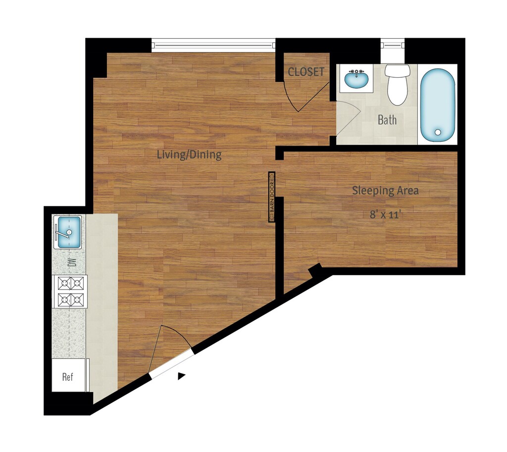 Studio, 1 Bath, 341-420 sq ftAvailable NowModel Gallery