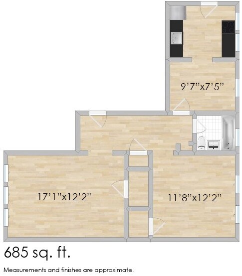 Apartment Model: 515 S. Cuyler S & 517 S. Cuyler N$1,3991 Bedroom, 1 Bath, 685 sq ftAvailable December 1, 2025![]()
