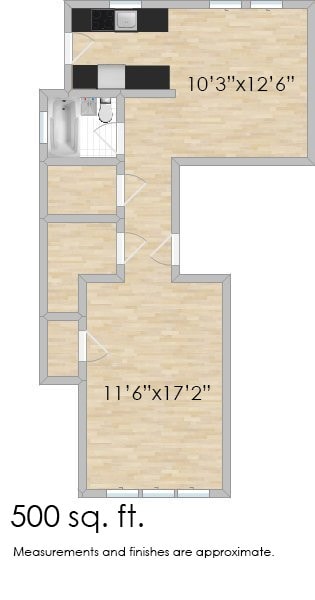 Studio, 1 Bath, 600 sq ftModel Gallery