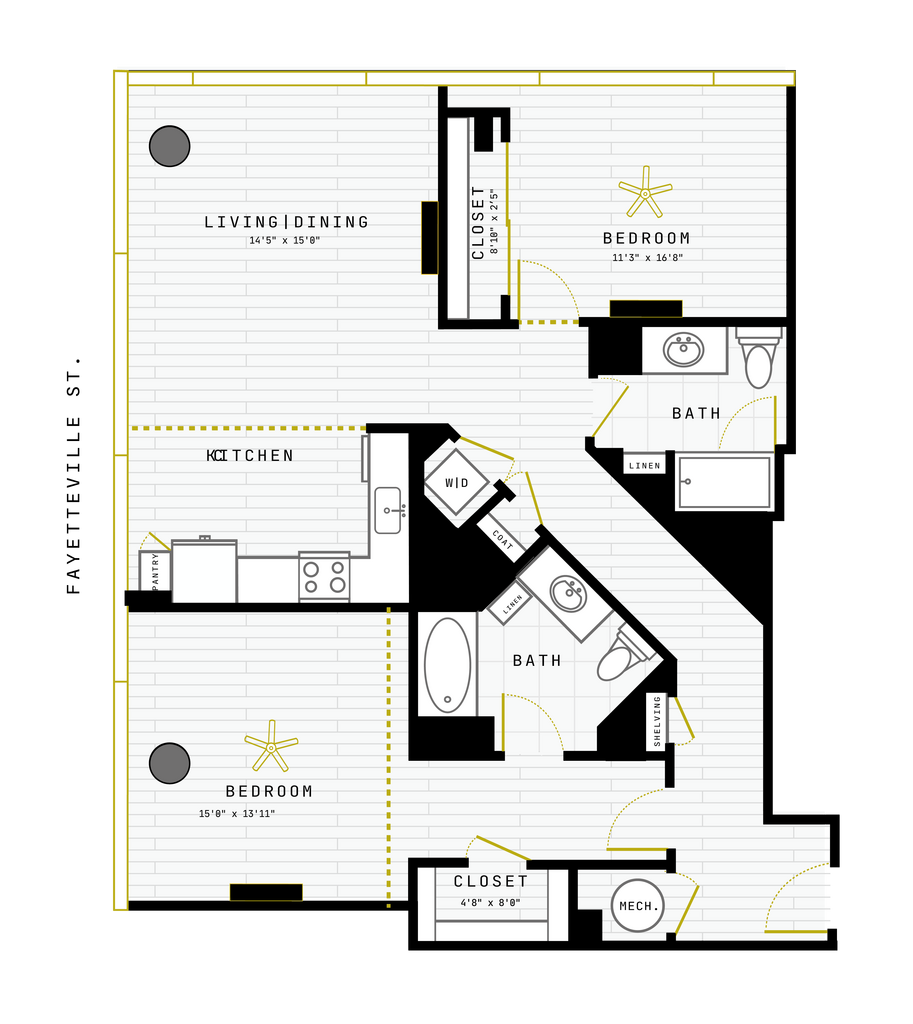 Experience modern high-rise living at 511 Faye, perfectly positioned on Fayetteville Street in the heart of downtown Raleigh. These studio, one-, and two-bedroom homes feature soaring 9?+ ceilings, floor-to-ceiling windows, smart-home technology, and refined finishes throughout. Residents enjoy panoramic city views, a rooftop Skydeck with a sparkling pool and a fireside lounge, fitness and yoga spaces, and a dedicated concierge offering unmatched convenience. With striking interiors, pet-friendly amenities, and seamless access to Raleigh?s dining, culture, and entertainment, 511 Faye delivers a lifestyle defined by comfort, connection, and elevated design. The price shown reflects Base Rent only. Residents are responsible for additional required fees, including but not limited to an application fee, security deposit, community amenity fee, and utility charges. These fees are assessed per applicant or per unit as applicable and may vary based on usage or lease terms. Please consult a leasing agent for a comprehensive list of all required, optional, and situational fees.