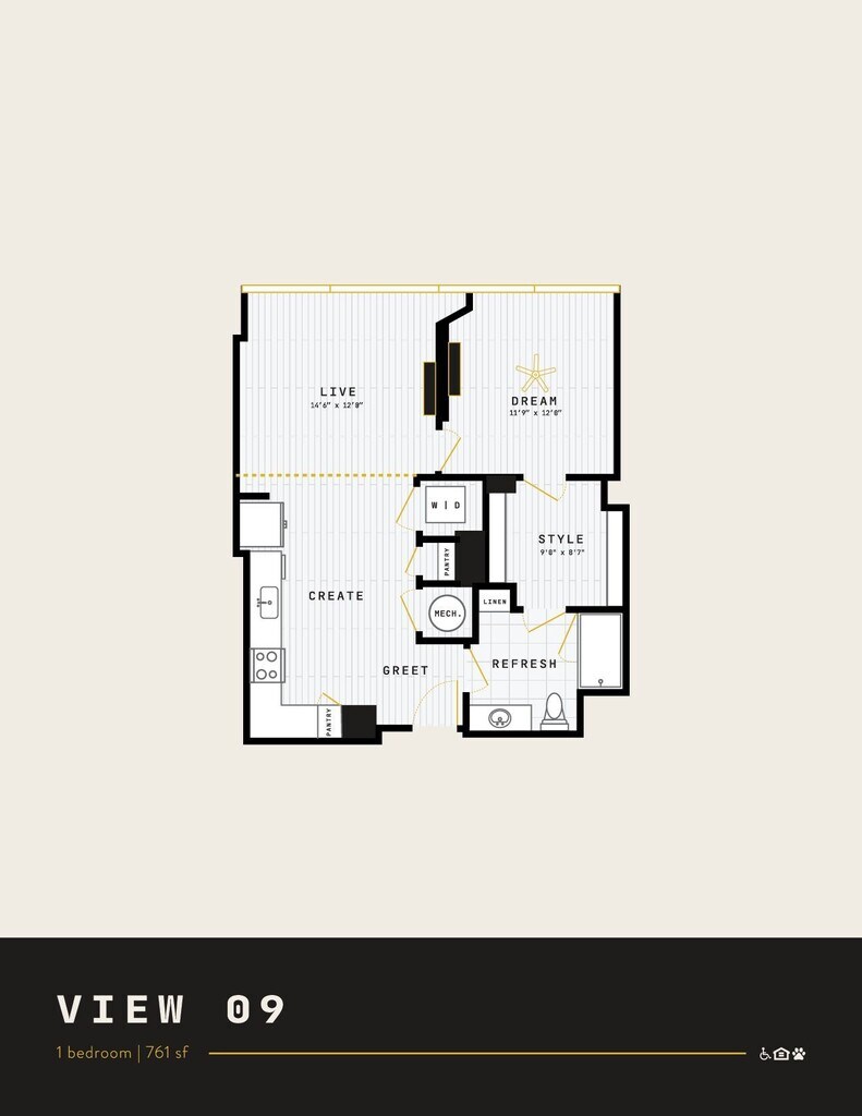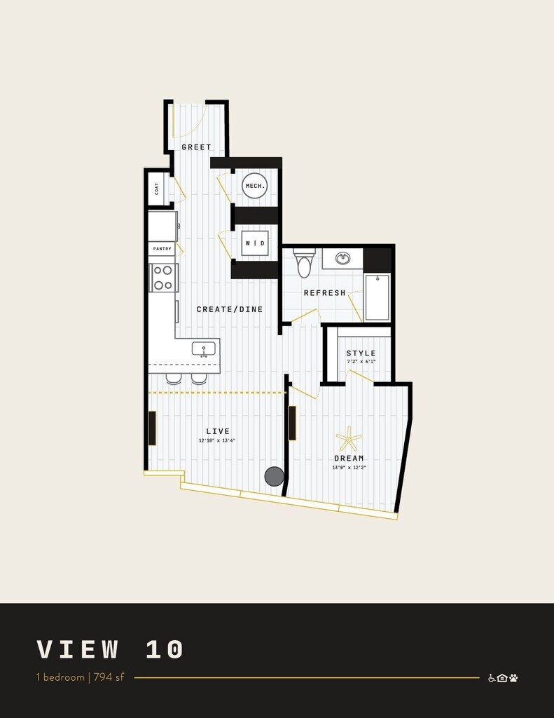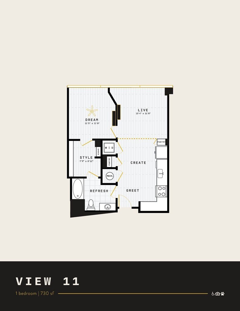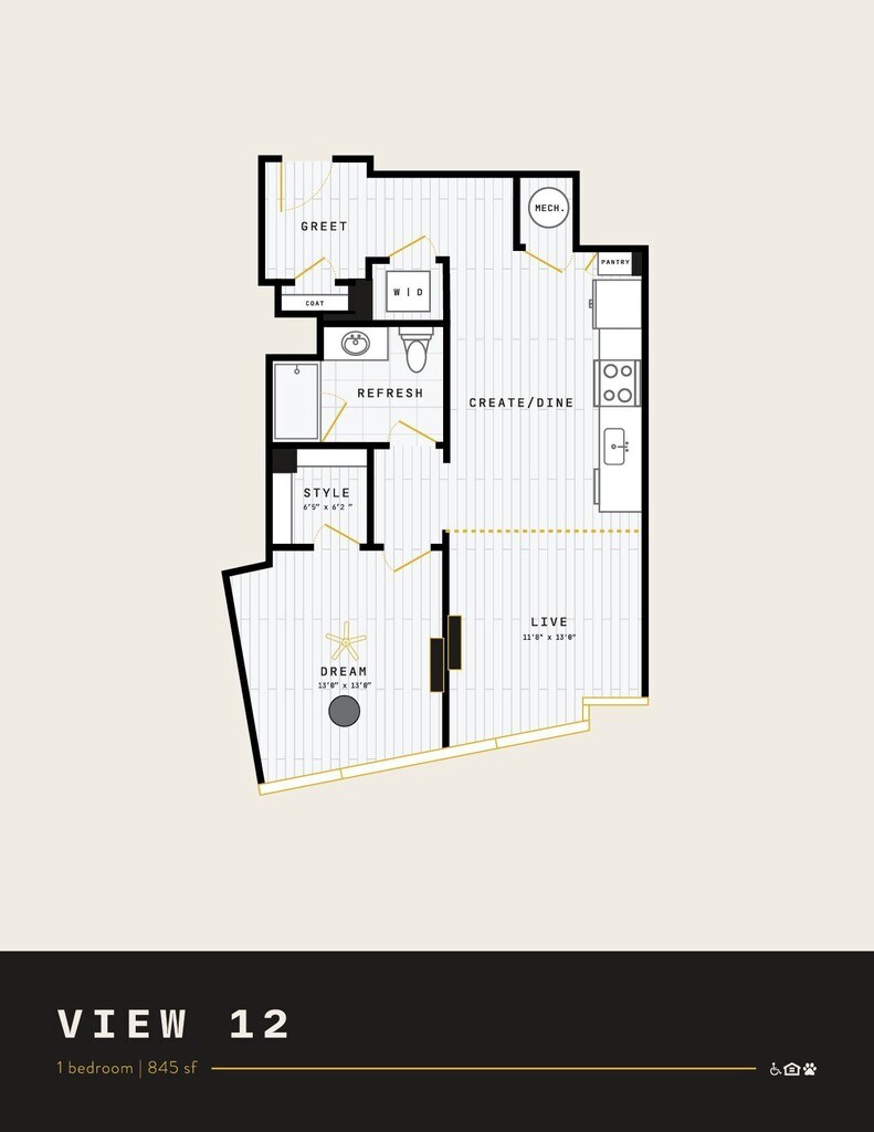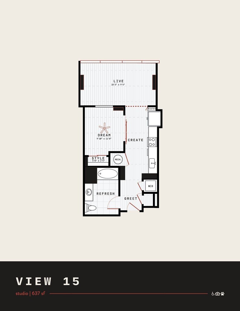 Studio, 1 Bath, 637 sq ftAvailable NowLargest StudioThis is the largest Studio at this PropertyModel Gallery