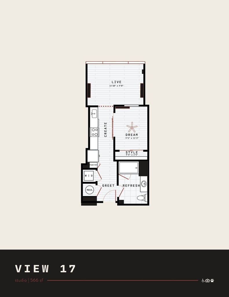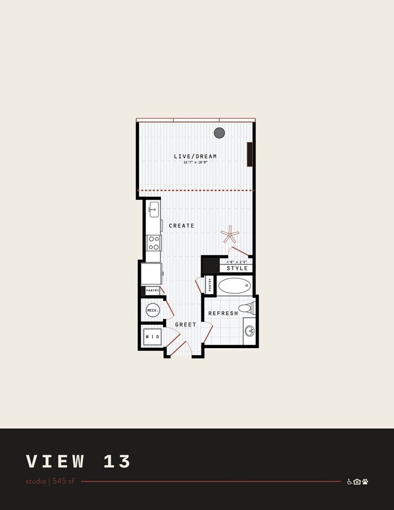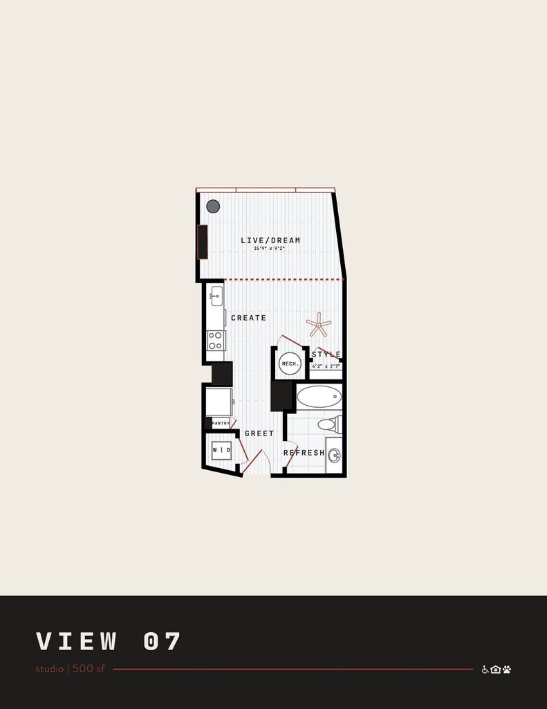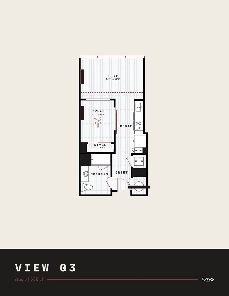 Apartment Model: Studio 03$1,502Studio, 1 Bath, 588 sq ftAvailable Now![]()