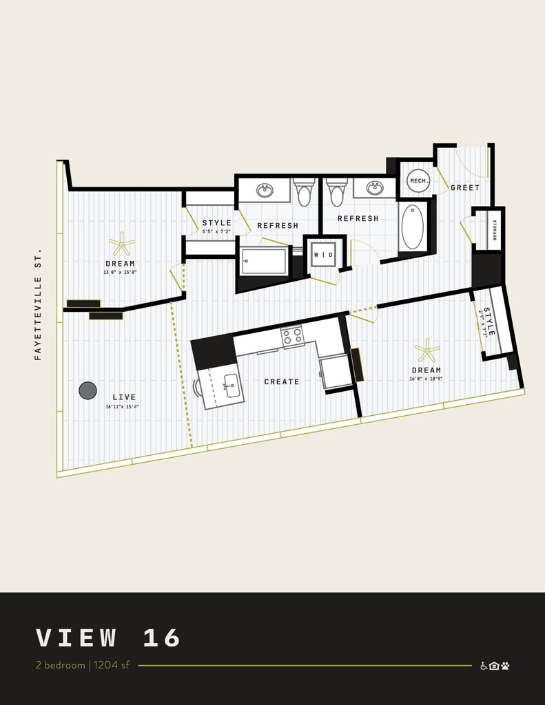 511 Faye is high-rise living at its finest, elevated like never before in the heart of Raleigh's city center. For socialites, tech leaders, and leisure seekers alike, this is the home of innovative living complete with high-end interiors, panoramic views of downtown, and unmatched conveniences like Nest Thermostats, keyless Bluetooth door locks, and smart light switches. 511 Faye combines striking design with our city's southern charm, tech innovations with luxurious comforts, and the vibrancy of downtown with the beauty of modern, high-rise living. This close-knit community is home: this is beauty at every angle.