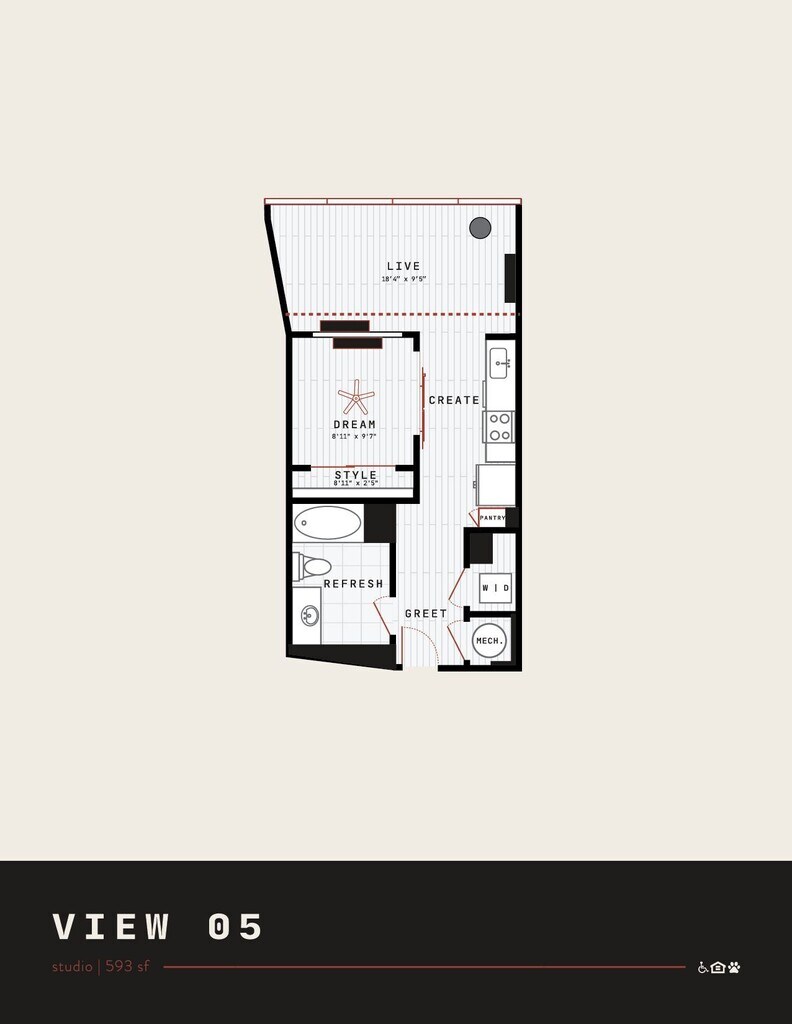 Apartment Model: Studio 05$1,512Studio, 1 Bath, 593 sq ftAvailable Now![]()
