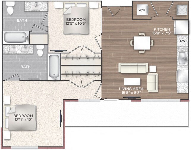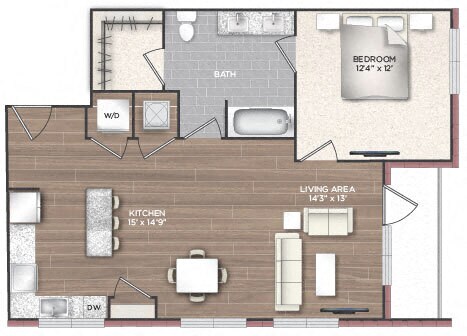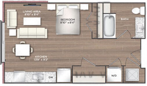 Studio, 1 Bath, 585 sq ftLargest StudioThis is the largest Studio at this PropertyModel Gallery