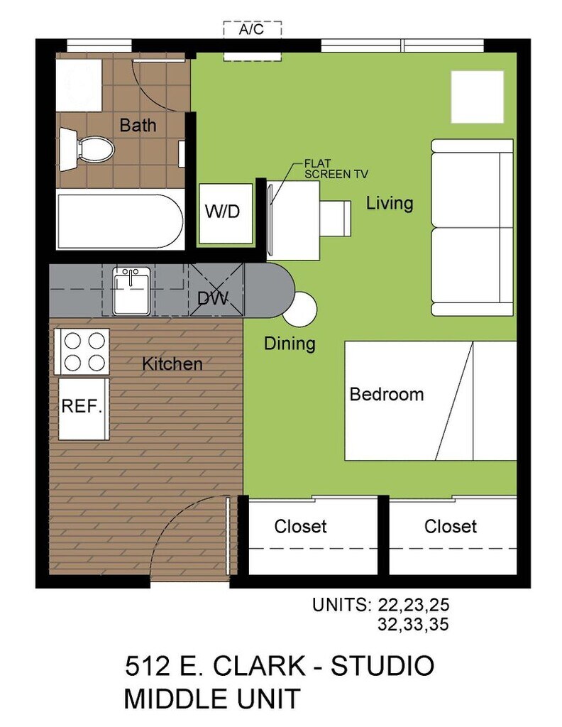 These convenient, affordable and comfortable apartments feature a large living/dining area, flat screen TV, dishwasher, in-unit washer/dryer, and more! They are located close to shopping, restaurants, and the University of Illinois Engineering Quad! These convenient apartments provide a comfortable, convenient and secure place to live and study. Utility fees will range based on unit size, but the utilities included are water, internet, sewer, trash, and recycling! Pets welcome! See our Leasing FAQ! Leased parking available! Income Requirement Waived for UIUC Students! Co-Signer Not Required for Qualified Applicants! Low admin fee or security deposit equal to 1 month rent installment – you choose!