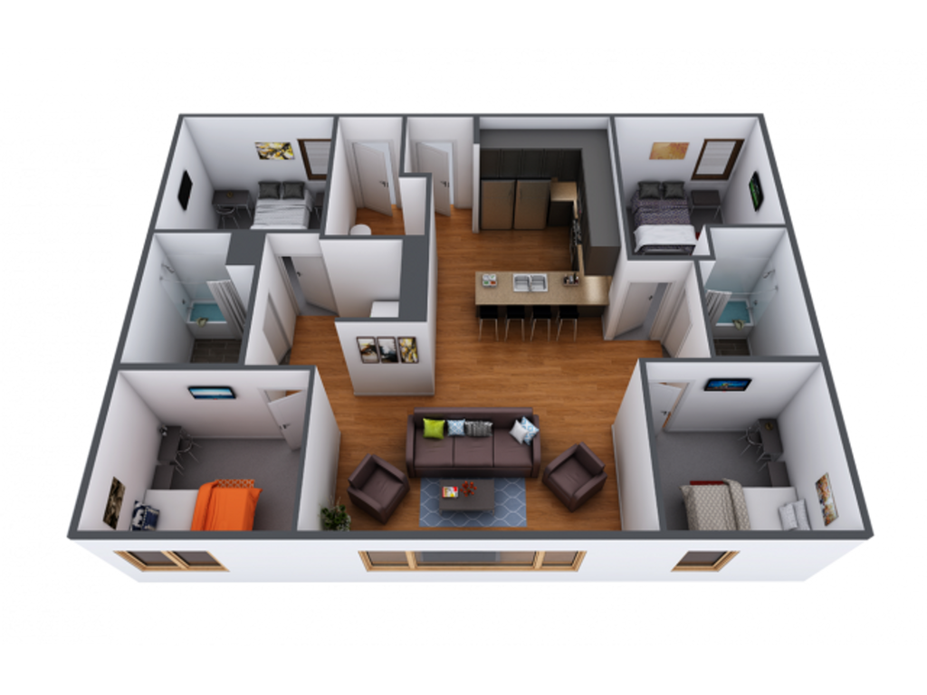 4 Beds, 2 Baths, 1325 sq ftAvailable Aug 21, 2026Largest 4 BedroomThis is the largest 4 Bedroom at this PropertyModel Gallery