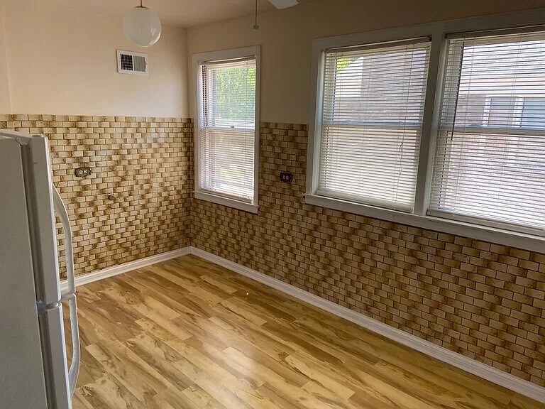 House near the Frank Lloyd Wright studio and district. 3 bedrooms 1 & 1/2 bathrooms, eat in kitchen with separate L shaped living and dining room. In the Holmes school boundary. Great block and neighborhood. Central air and heat, not radiators. Small dog welcome. Includes one garage parking spot.
