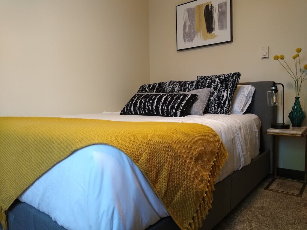 FULLY FURNISHED! * Walking distance to downtown Eau Claire * Walk to Phoenix Park that sits along the Chippewa River * Comfortable Beds! * Lots of pillow options. * One walk-in closet! * 32 inch smart TV in each bedroom * Custom fit shades to offer increased darkness * Fan! * Peaceful Breakfast nook * Living room offers a large sectional with a 55 INCH SMART TV! * FULLY STOCKED kitchen down to a personal sized AIR FRYER! * Stackable washer and dryer We will start you off with some cleaning supplies, paper goods and toiletries. You will be in charge of for replenishing these items after these initials are exhausted. YOUR HOME AWAY FROM HOME!!!
