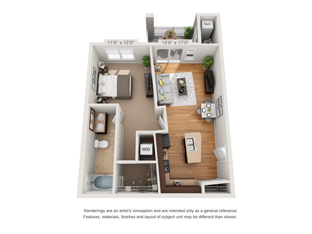 1 Bed, 1 Bath, 667 sq ftAvailable NowModel Gallery