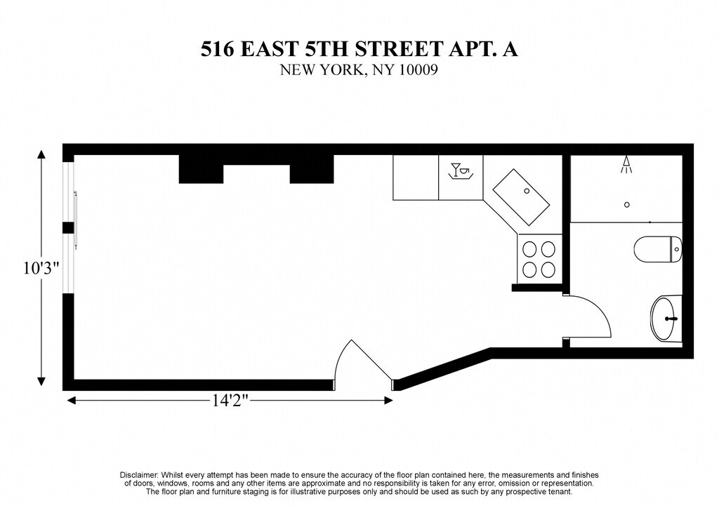 516 EAST 5TH STREET - STUDIO / 1 BATH - Floorplan Apartment Unit: AApartment Model: 516 EAST 5TH STREET - STUDIO / 1 BATHStudio, 1 Bath, 200 sq ftAvailable June 1, 2026![]()
