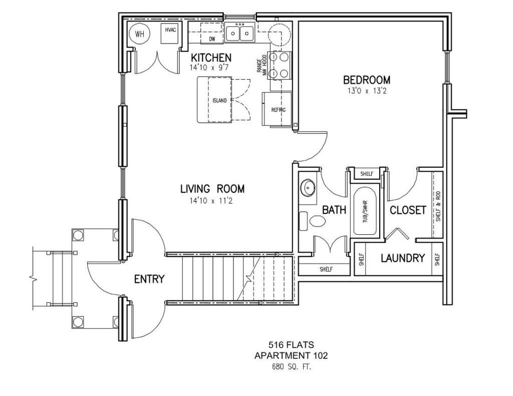 516 Flats - Floorplan 1 1 Bed, 1 bath