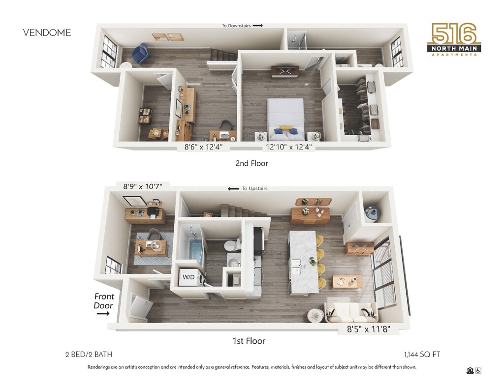 516 North Main Apartments offers 1 to 2 Bedroom apartments having 609–1,515 sqft. Here is the current pricing and availability: