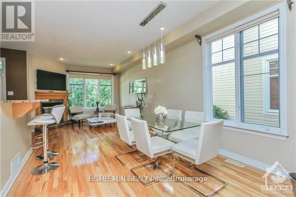 Welcome to this elegant 3-bedroom,2.5-bathroom end-unit townhouse,situated in the highly desirable community of Findlay Creek. The home features hardwood flooring on both the main and second levels,complemented by 9-foot ceilings on the main floor and a conveniently located laundry room upstairs.The main level offers a versatile den/office,a spacious dining room,a modern kitchen,and an inviting living room complete with a cozy fireplace. A beautiful staircase leads to the second level,where you will find a generous primary suite with a walk-in closet and a private ensuite,along with two additional well-sized bedrooms and a full bathroom.The fully finished lower level includes a large recreation room,ideal for family gatherings or entertaining.Perfectly located near top-rated schools,shopping,parks,and scenic walking trails,this home is move-in ready and an exceptional opportunity. Additional highlights include an owned hot water tankno rental fees required.Dont miss your chance to call this property your new home. Contact us today for your private viewing! (id:52069) ID#: 2069551