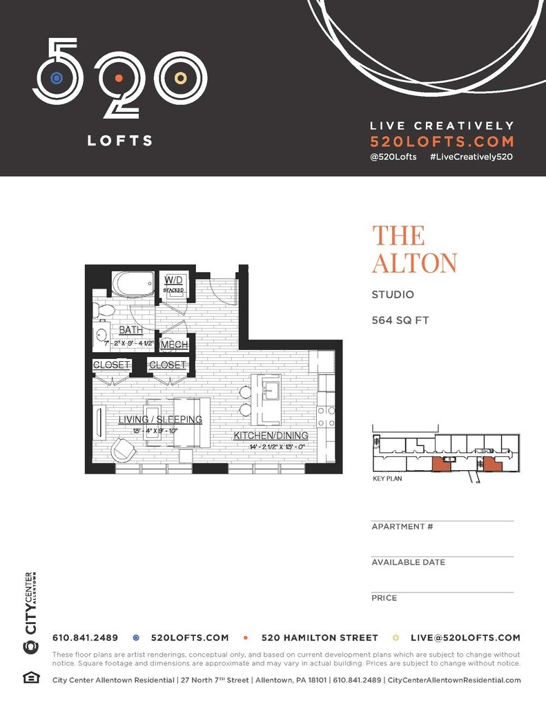 Apartment Model: The AltonStudio, 1 Bath, 564 sq ftAvailable Now![]()