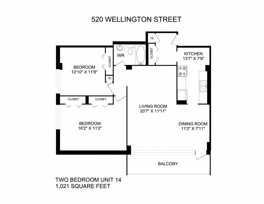 2 bedroom, 1 bathroom, with balcony - Floorplan 6 Apartment Unit: 1014Apartment Model: 2 bedroom, 1 bathroom, with balcony2 Bedroom, 1 Bath, 1021 sq ftAvailable February 1, 20262 Beds, 1 bath
