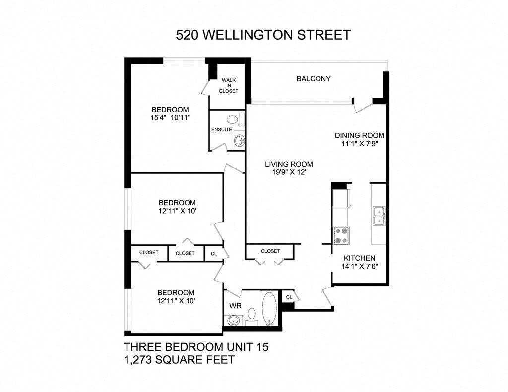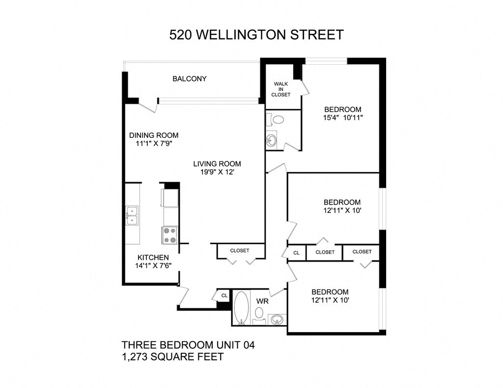3 bedroom, 1.5 bathroom, with balcony - Floorplan 2 Apartment Unit: 0415Apartment Model: 3 bedroom, 1.5 bathroom, with balcony3 Bedroom, 2 Bath, 1273 sq ftAvailable March 1, 2026