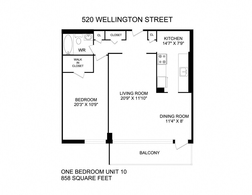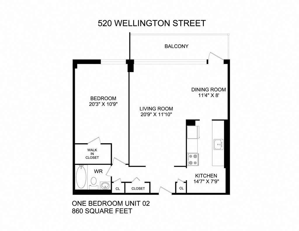 1 bedroom, 1 bathroom, with balcony - Floorplan 10 Apartment Unit: 0702Apartment Model: 1 bedroom, 1 bathroom, with balcony1 Bedroom, 1 Bath, 860 sq ftAvailable February 1, 20262 Bedrooms