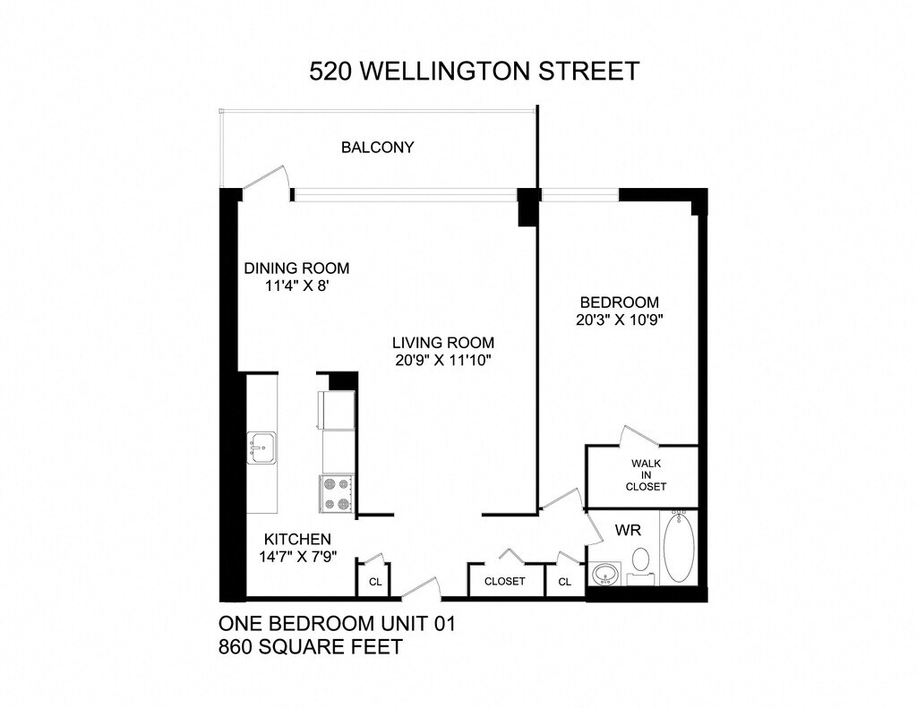 Apartment Model: 1 bedroom, 1 bathroom, with balcony1 Bedroom, 1 Bath, 860 sq ftAvailable February 1, 2026![]()