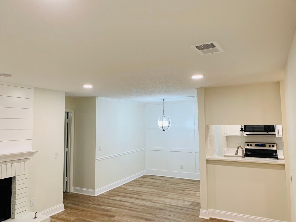 Beautiful remodeled Condo for rent two bed, 2 bath main level (step-less) located across the pool. (2 steps from parking lot unit). Perfect for room-mates. The bedrooms are split on either side of condo. Quaint quiet, peaceful, wooded neighborhood with easy access to parks, hiking, Chattahoochee Roswell Riverwalk, restaurants, shopping, and located only minutes away from Canton Street and Old Historic Roswell!. Minutes from GA-400: Exit 6 Northridge Rd. New kitchen quartz countertops, new stainless steel appliances, new garbage disposal. New vinyl plank flooring, new lighting features, new paining entire condo, new vanities in both bathrooms. Ceiling fans on bedrooms, spacious walk-in closets and enough parking space available (unassigned). The rent payment include water, sewer. trash, washer and drier, swimming pool, lawn maintenance. Pet friendly.