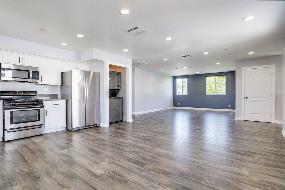 Newly built in 2019! This spacious, open floor plan 3 Bedroom + 2 Full Bathroom lower unit is contemporary living at it's finest! This well-appointed unit is open, and bright with natural light and recessed lighting in every room. Features include engineered hardwood floors, central air/heat, Nest thermostat, washer/dryer in-unit, double-paned windows, and 2 dedicated parking spots (side by side parking). Located on a quiet, family friendly cul-de-sac, the unit has no shared walls. The kitchen has newer stainless steel appliances including refrigerator, dishwasher, stove/oven, and microwave. Great for those looking to be in a quiet neighborhood but still close to Downtown, Pasadena and minutes to anywhere in Los Angeles. Great walk score near plenty of shopping and dining. Pet friendly. Available Oct 1st. A MUST SEE! 3-D Virtual Tour available upon request.