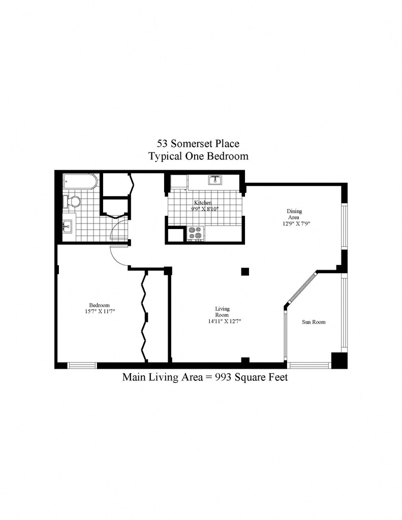 Apartment Model: Two Bedroom2 Bedroom, 1 Bath, 993 sq ftUnavailableTwo Bedroom - Floorplan 1