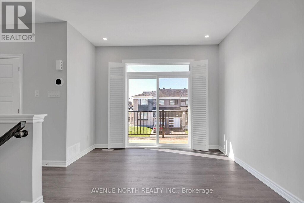 Welcome to this rare,low-maintenance,sun-filled 3-bedroom + den corner unit in the desirable Half Moon Bay community. Situated on a large corner lot,this 1,835 sq. ft. home (builder's plan) offers over $90,000 in upgrades and is just minutes from Barrhaven Town Centre,schools,parks,and everyday conveniences. Features: 3 bedrooms + den 2.5 bathrooms Large garage with inside entry Private den,perfect for a home office Large sunny balcony off the living space This bright and stylish corner unit offers functional and comfortable living across three levels. The welcoming front porch opens to a foyer with a storage room,garage access,and a private den perfect for working from home. Upstairs,the open-concept living area features a spacious kitchen with ample cupboard space,quality finishes,and room for entertaining. The adjacent dining and great room benefit from abundant natural light,and a patio door leads to a sunny balcony ideal for your morning coffee. The top floor boasts a light-filled primary bedroom with a walk-in closet and ensuite,two additional bedrooms with ample closet space,and a beautifully upgraded main bath with a double shower. (id:52069) ID#: 1923776