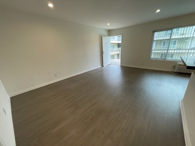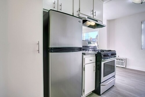 Gorgeous 1 Bed and 1 Bath Apartment in an Apartment Complex! Unit has Plenty of Natural Light, Hardwood Laminate Floors Throughout and Recessed Lighting Throughout. Kitchen has White Cabinetry with Gray Quartz Countertops, Large Stainless Steel Single Basin Sink and Stainless Steel Appliance Included: Refrigerator, Gas Stove and Dishwasher. Vertical Blinds on all the Windows. Wall AC Unit in the Living Room and Wall Furnace. Bathroom with Bathtub with