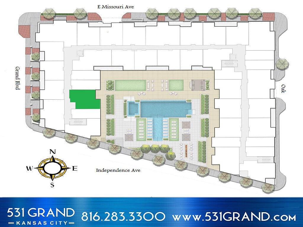 531 Grand - The City at Your Doorstep Welcome to Kansas City's Most Appealing Luxury Apartment Community!!! Set in the heart of the River Market, 531 Grand comes with unparalleled amenities including the Private resort-style pool, spa and terrace. Apartments feature 9 foot ceilings, natural wood cabinets, custom fit window blinds for your floor to ceiling windows, stainless appliances, and quartz counter tops. For your convenience, you'll have key-less entry doors, a washer/dryer, and Nest thermostats. For your enjoyment, apartments feature great views via a private patio or balcony for you and your guests to enjoy year-round. Our community offers controlled access entry, with secured garage parking that includes car charging stations. We also have a bicycle wash and repair station, dog wash station, and bicycle storage available. Our club room features a full kitchen and fireplace, dedicated yoga/spin room, complete fitness center, and an internet cafe. Our outdoor entertainment area includes a resort style pool, a fire pit, outdoor grilling stations, cabanas, and unparalleled city views. We are a nonsmoking community, with easy access to the new KC Streetcar, the River Market, and Downtown. On-site Management and emergency maintenance 24 hours. see more at