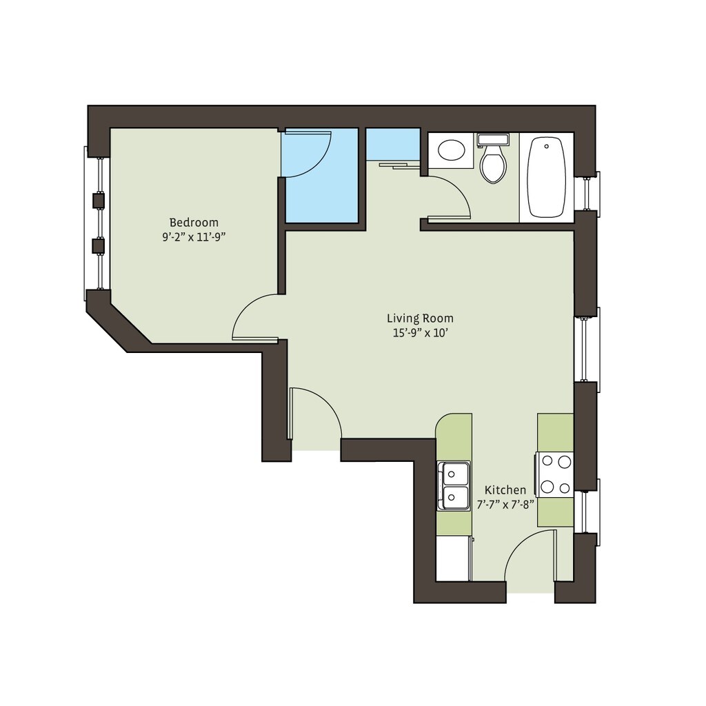 5320-1bc - Floorplan 1 Apartment Unit: 24-1BApartment Model: 5320-1bc1 Bedroom, 1 Bath, 438 sq ftAvailable December 10, 20255320-1G