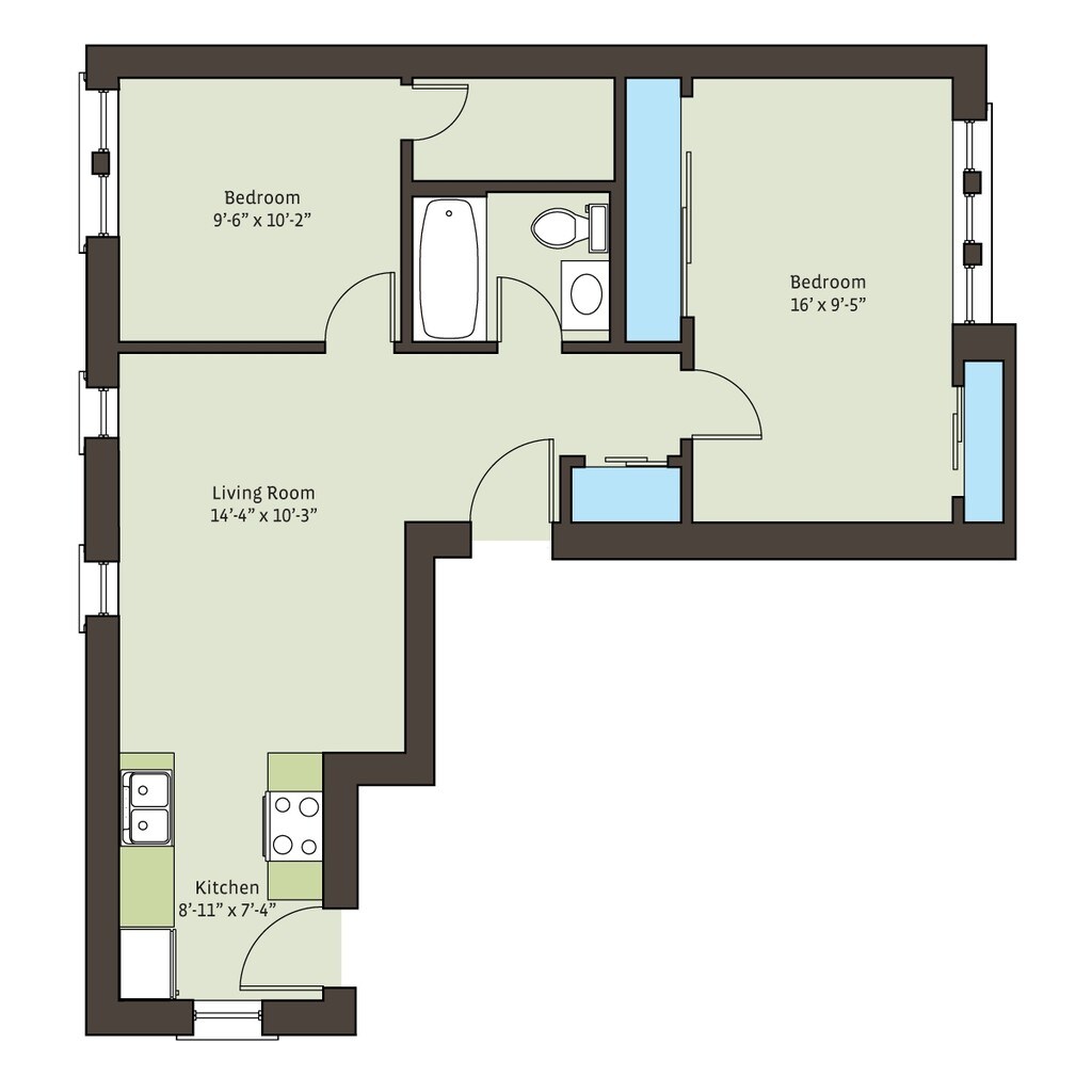 Apartment Model: 5320-2bC2 Bedroom, 1 Bath, 643 sq ftUnavailable![]()