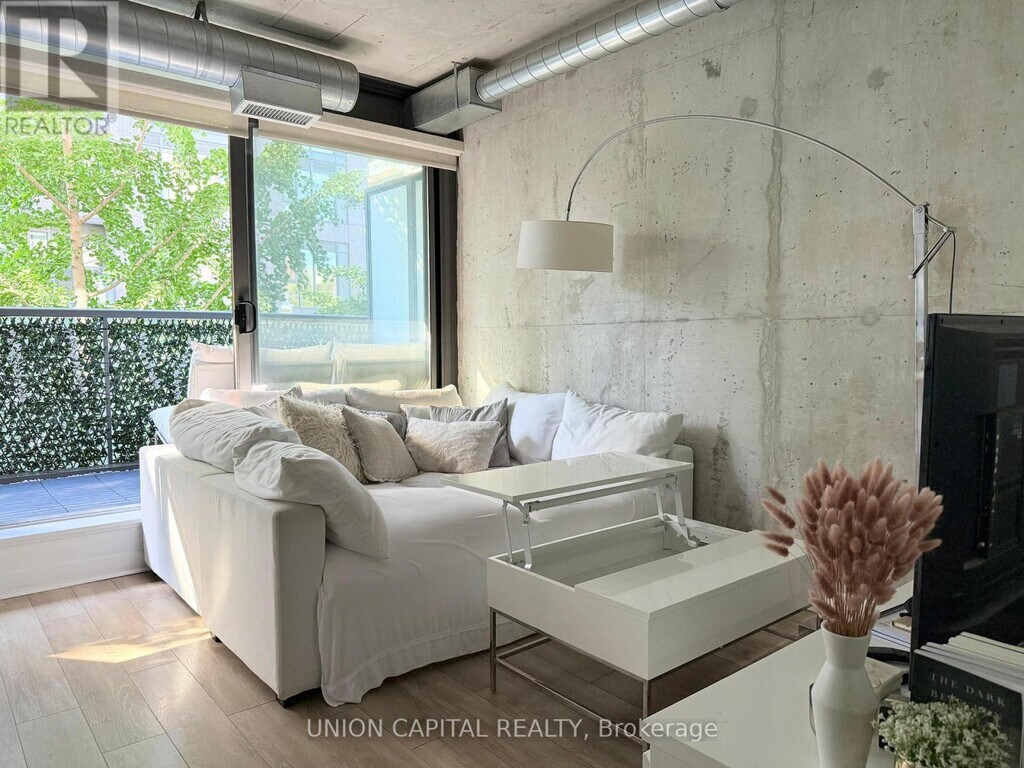 FULLY FURNISHED - Just pack your bags and enjoy this bright and stylish 1-bedroom loft that perfectly captures the best of downtown living in one of Toronto's most vibrant neighbourhoods. Step inside to discover exposed concrete ceilings and feature walls,industrial-style ductwork,and floor-to-ceiling windows that fill the space with natural light. Oversized double patio doors create a seamless connection to your spacious private terrace ideal for entertaining or relaxing. With a natural gas BBQ hookup and water connection,the terrace truly feels like an outdoor extension of your living space. Inside,you'll find gas cooking,built-in closet organizers,and an open-concept layout. Tucked away in a quiet boutique building just off Queen West,you're steps from Loblaws,Joe Fresh,Winners,LCBO,Waterworks,The Well and an endless selection of cafes,restaurants,and nightlife. Enjoy weekend strolls to Trinity Bellwood's Park,or explore nearby Ossington and King West. With a 100 Walk Score,100 Transit Score,and 99 Bike Score,convenience truly doesn't get better than this. (id:52069) ID#: 1871985
