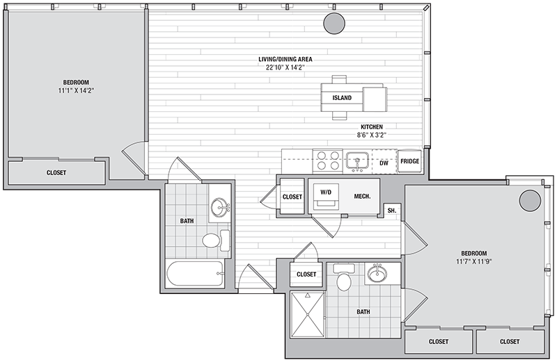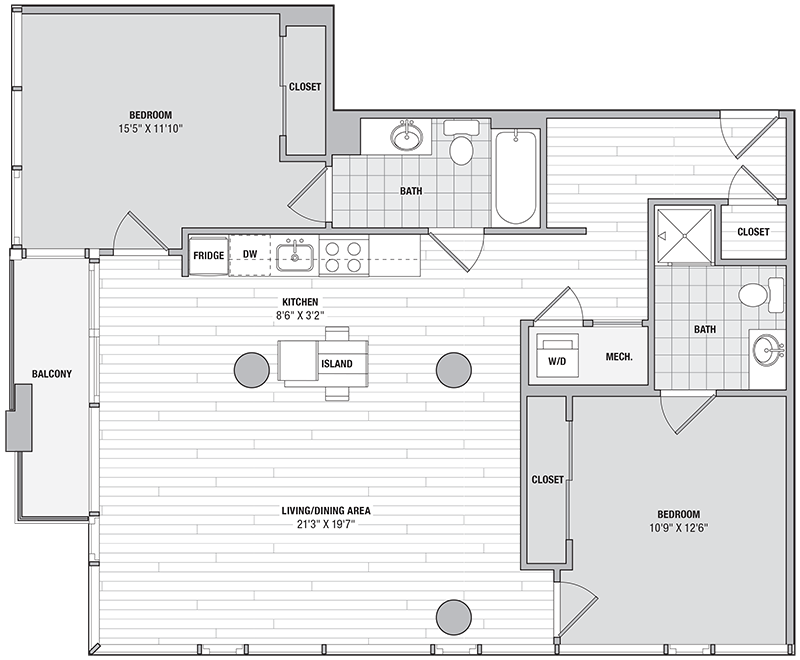 Apartment Model: 1 Bed 1 Bath JR BFrom $2,1231 Bedroom, 1 Bath, 530 sq ftAvailable Now![]()