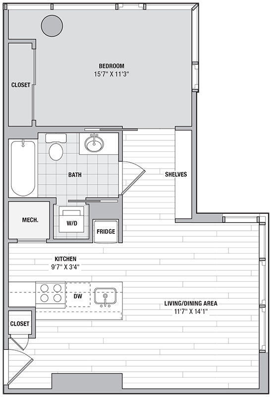 Studio, 1 Bath, 486 sq ftAvailable NowModel Gallery