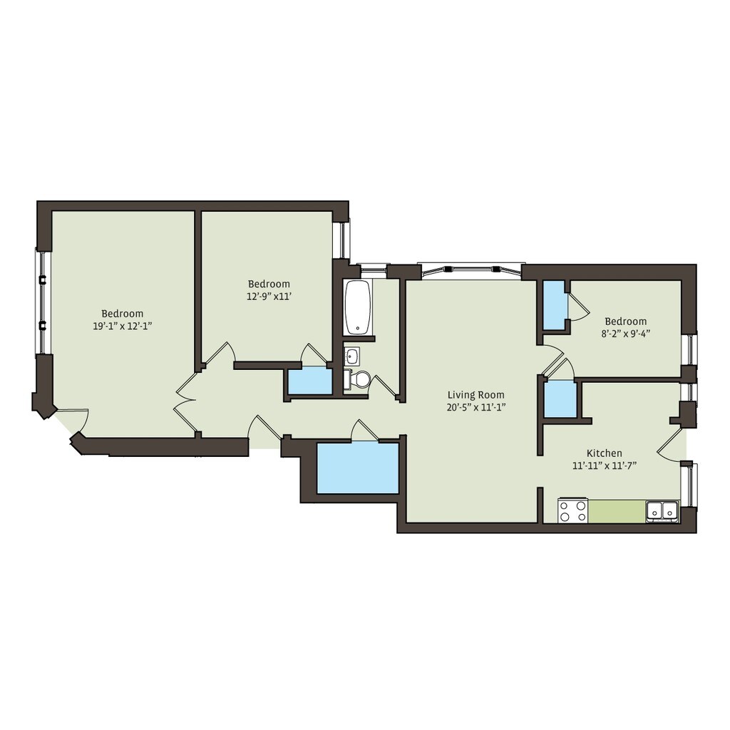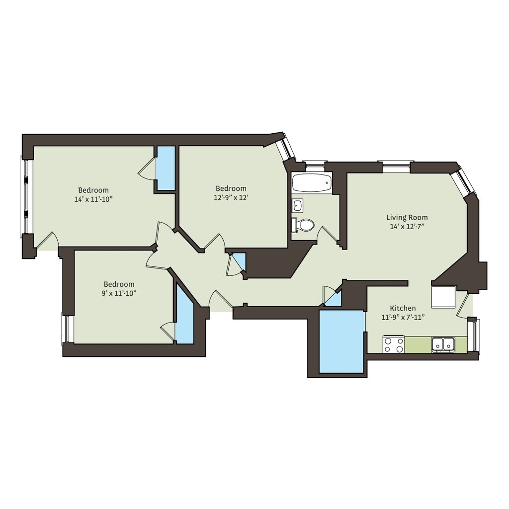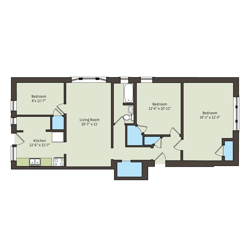 3 Beds, 1 Bath, 1069 sq ftLargest 3 BedroomThis is the largest 3 Bedroom at this PropertyModel Gallery