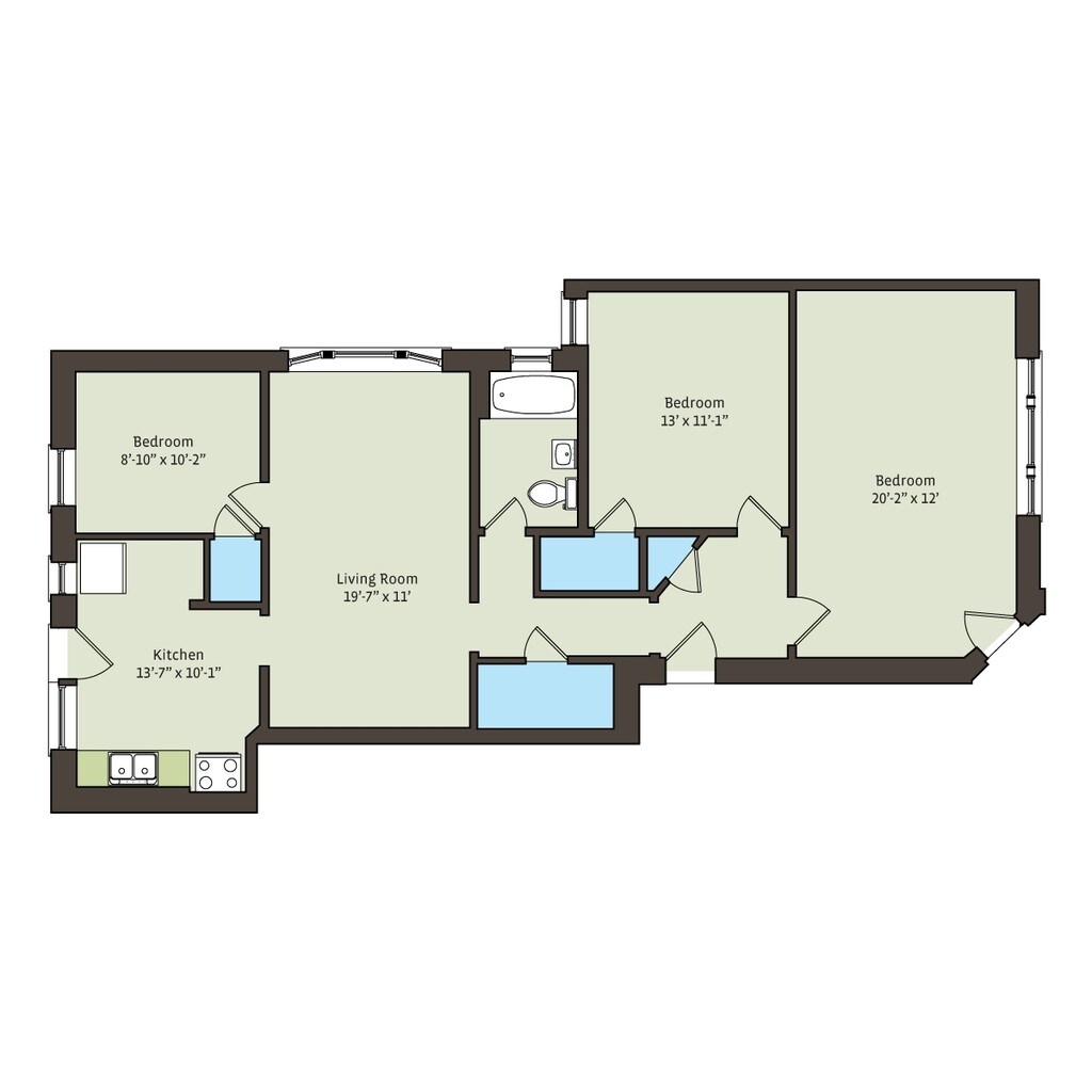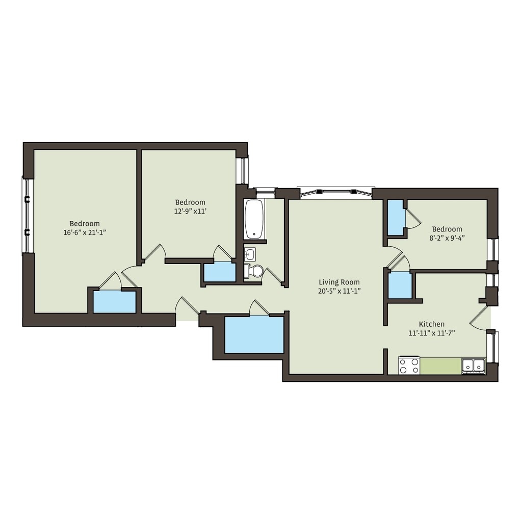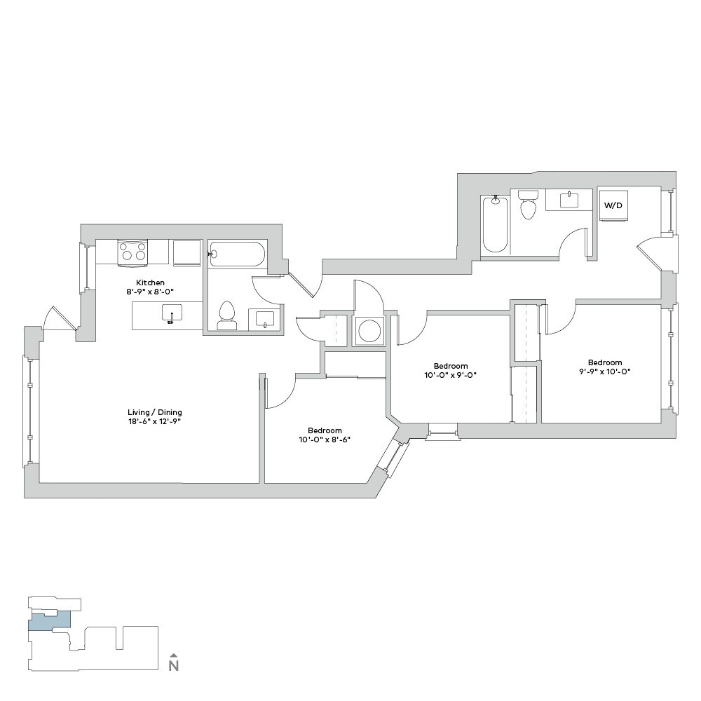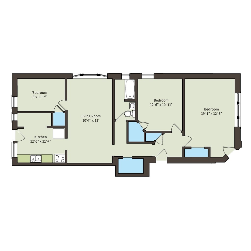 3 Beds, 1 Bath, 1069 sq ftLargest 3 BedroomThis is the largest 3 Bedroom at this PropertyModel Gallery