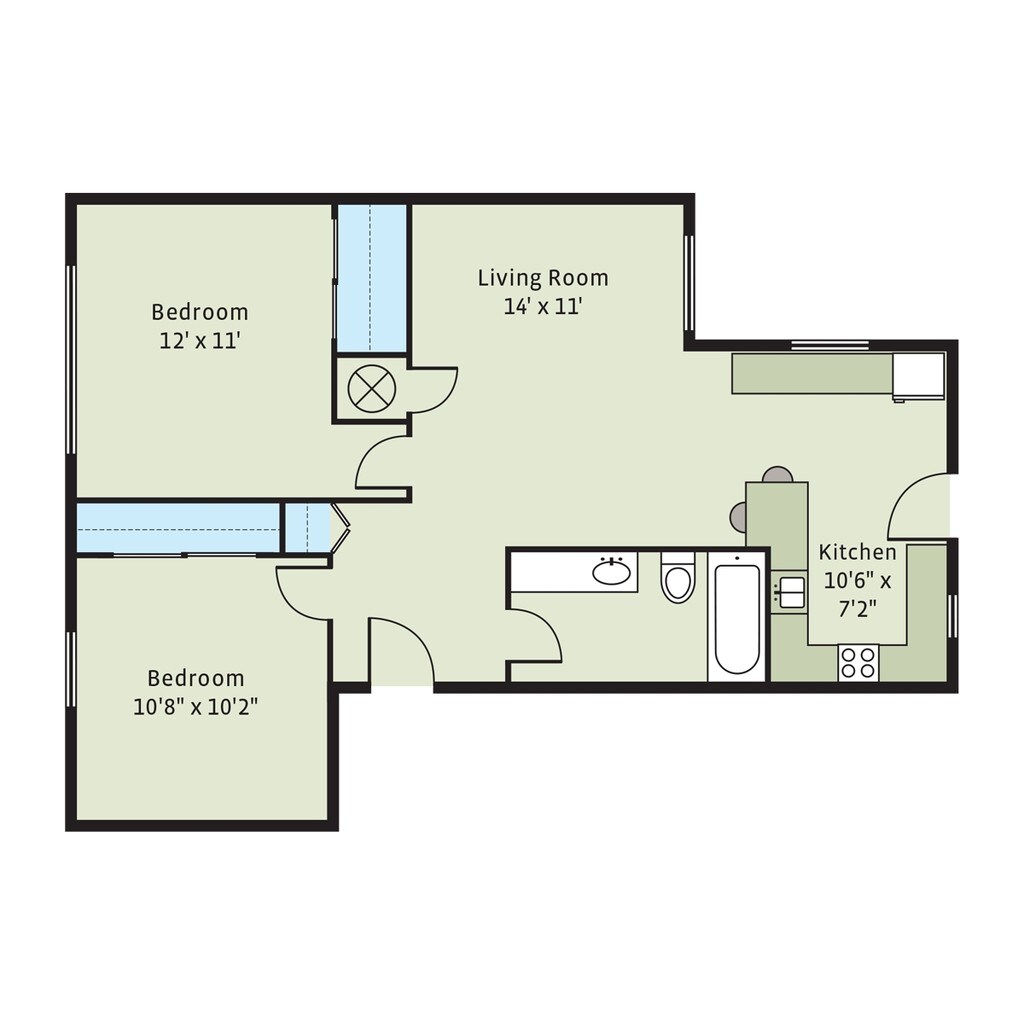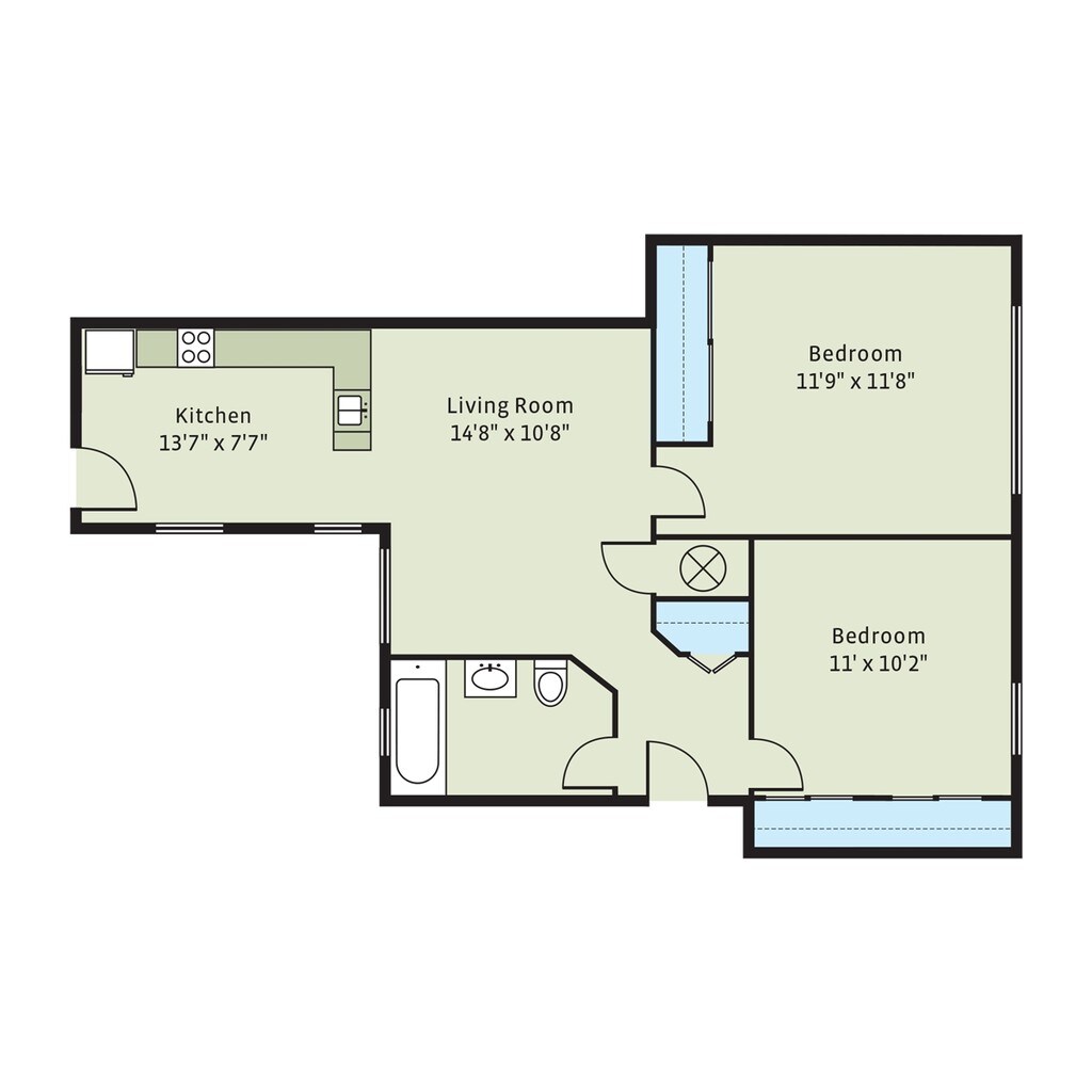 2 Beds, 1 Bath, 715 sq ftModel Gallery