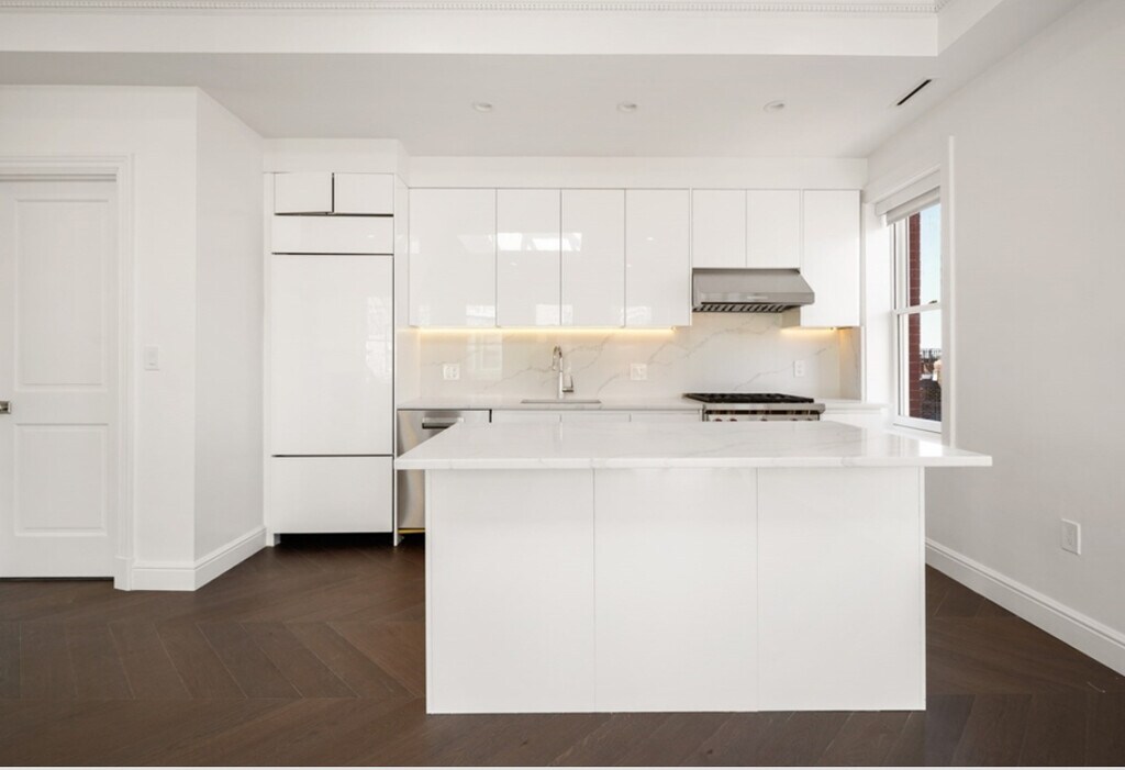 Elegant and sunlit 2 bed, 2.5 bath home in prime Brookline location. This residence offers a spacious open-concept layout with hardwood floors, high ceilings, and oversized windows throughout. The modern kitchen features stainless steel appliances, stone countertops, and ample storage, flowing into a generous living and dining area—perfect for entertaining or relaxing in style. Both bedrooms are well-appointed with en-suite bathrooms, custom closets, and abundant natural light. The additional half bath adds convenience for guests. Central air, in-unit laundry, and garage parking complete the package. Located near parks, shops, top-rated schools, and the T, this home blends comfort, function, and timeless Brookline charm.