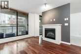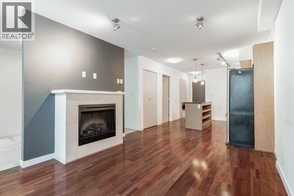 This 635sf 1 bedroom + den + flex + balcony condo has a unique and functional layout and engineered wood floors in living areas. The foyer takes you straight into the open rectangular living dining room with a fireplace,track lights and access to the covered balcony. The open kitchen features stainless steel appliances,a long row of veneer cabinets,granite countertops,tiled backsplash,and a center island with breakfast bar and pendant lights. Next to the living room is the unique semi-open bedroom with mirrored closet doors,ceiling chandelier,and a sliding glass door access to the den. The 4 pcs bathroom comes with end to end mirror,granite countertop,above counter sink,veneer cabinets and separate tub and shower stall. Rent includes 1 locker and 1 parking stall. (id:52069) ID#: 1601977