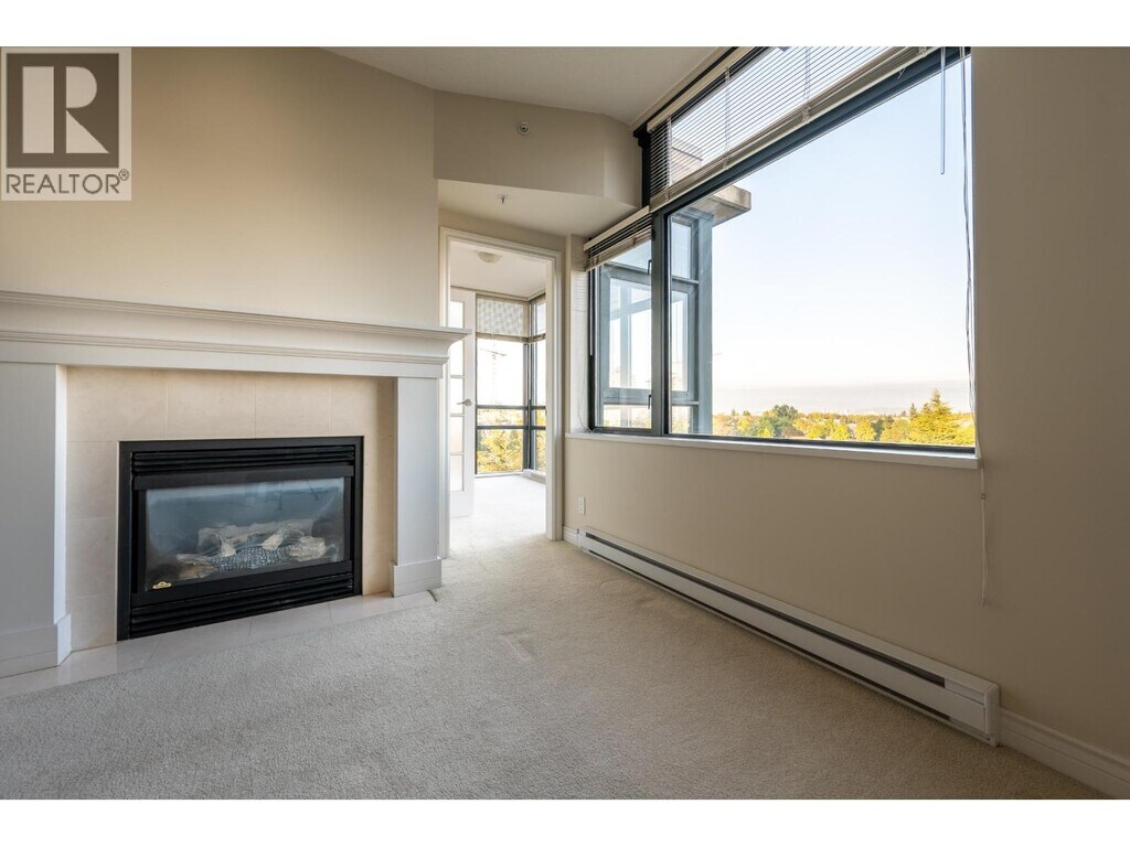 This spacious,bright 1-bedroom home includes a large solarium/office,fabulous 9 ft ceilings,and a cozy gas fireplace. Charming French doors,arched architectural details,and a light neutral palette create an elegant feel throughout. The kitchen offers generous cabinet and counter space plus a breakfast bar. The bedroom features a walk-in closet and fits a king-size bed,while the bathroom includes a dual tub/shower. A stacked washer/dryer adds convenience. Located in a quiet concrete boutique building with excellent natural light,the unit enjoys serene eastern exposure and sweeping 180° sunrise views from the North Shore Mountains to Mount Baker. (id:52069) ID#: 1594752