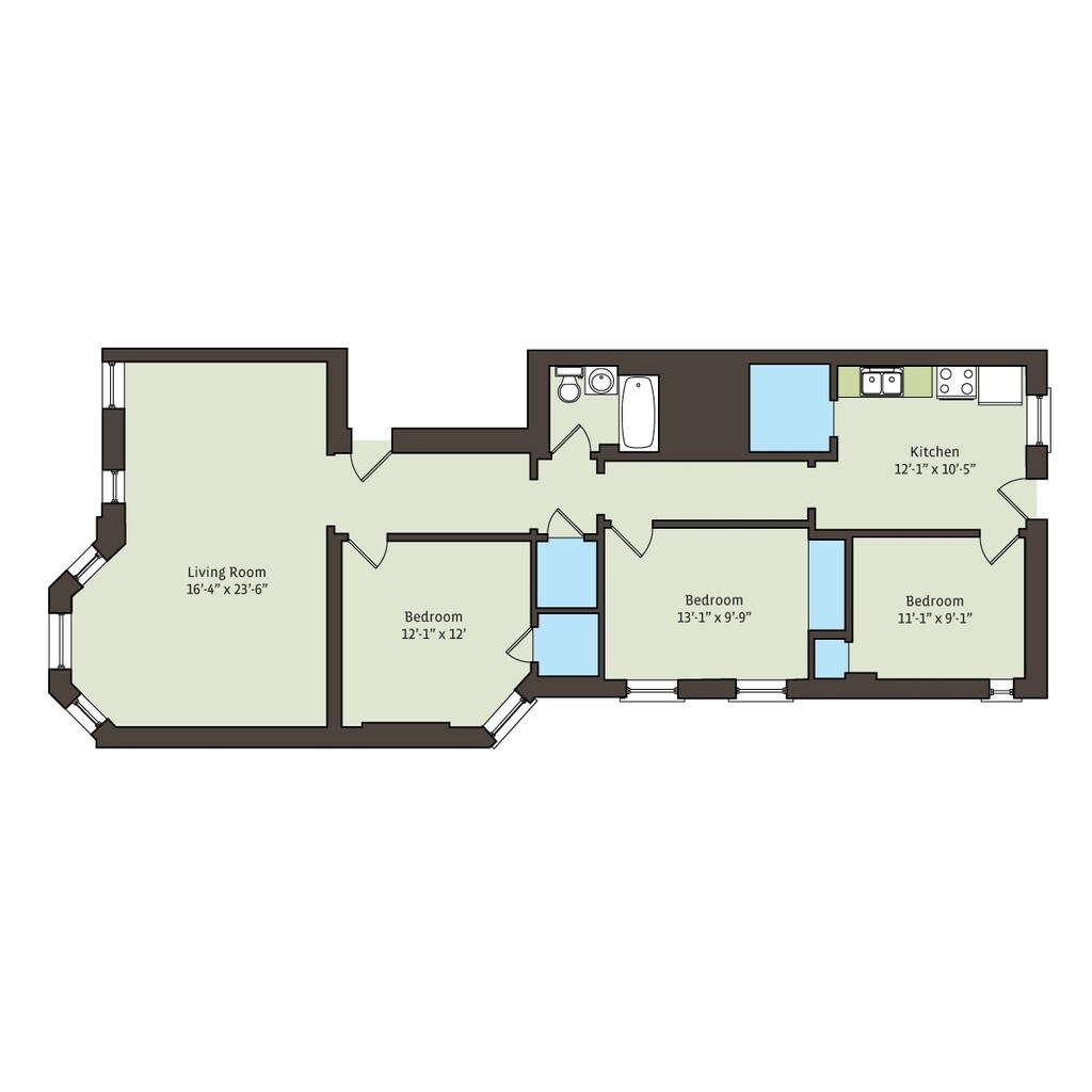 Apartment Model: 5401-3bC3 Bedroom, 1 Bath, 1109 sq ftAvailable Now![]()