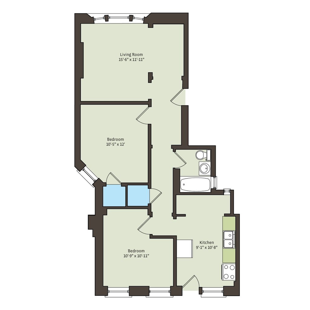 Apartment Model: 5401-2bC2 Bedroom, 1 Bath, 711 sq ftUnavailable![]()