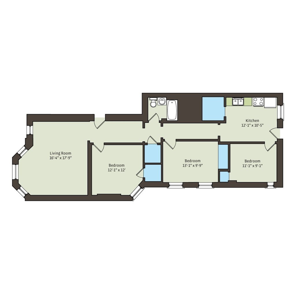 5401-3bC - Floorplan 1 Apartment Unit: 5403-1Apartment Model: 5401-3bC3 Bedroom, 1 Bath, 1109 sq ftAvailable Now5401-3bA