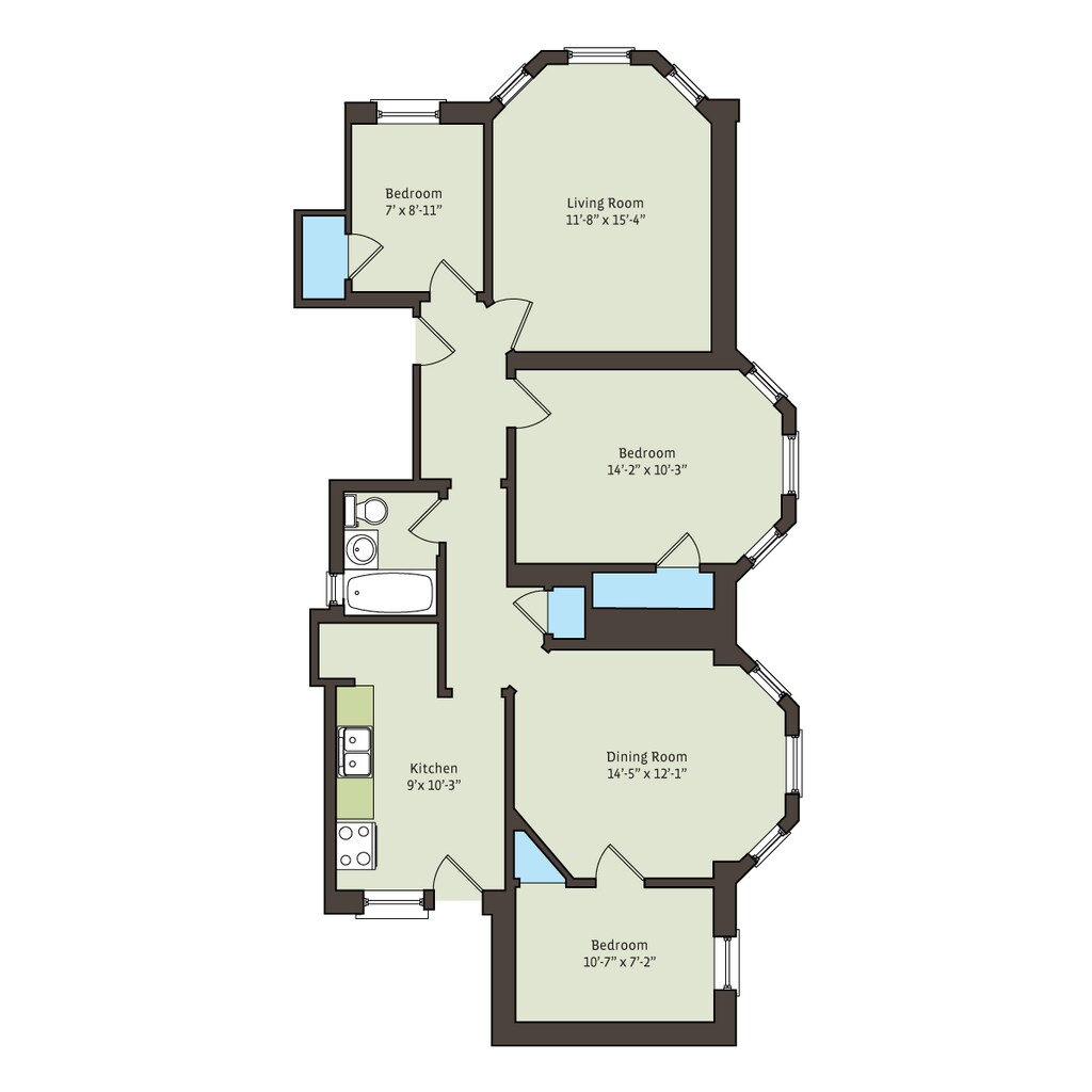 3 Beds, 1 Bath, 1183 sq ftLargest 3 BedroomThis is the largest 3 Bedroom at this PropertyModel Gallery