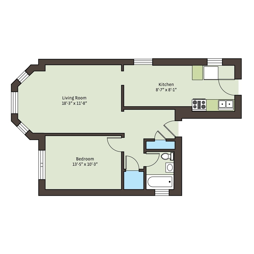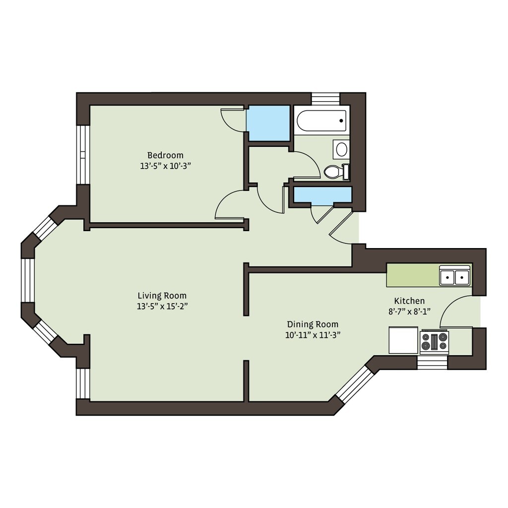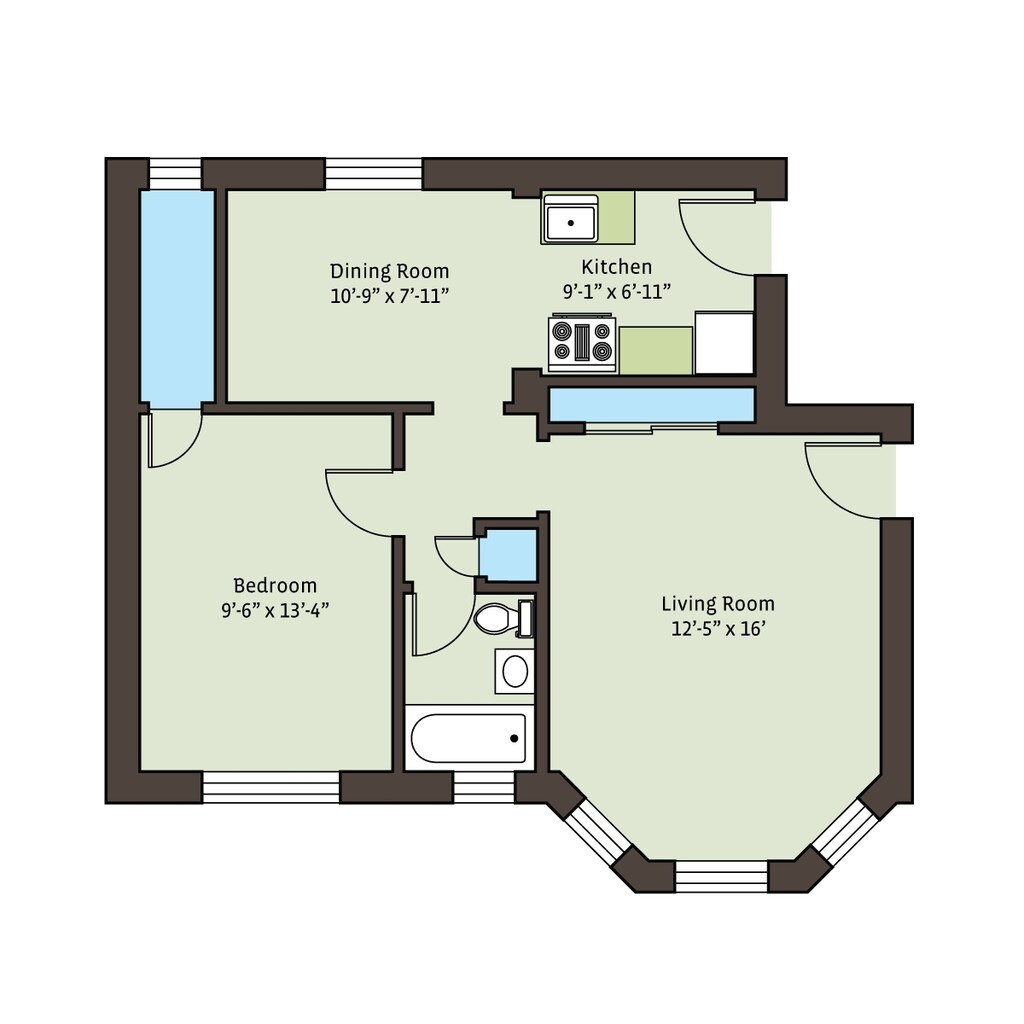 Studio, 1 Bath, 413 sq ftModel Gallery