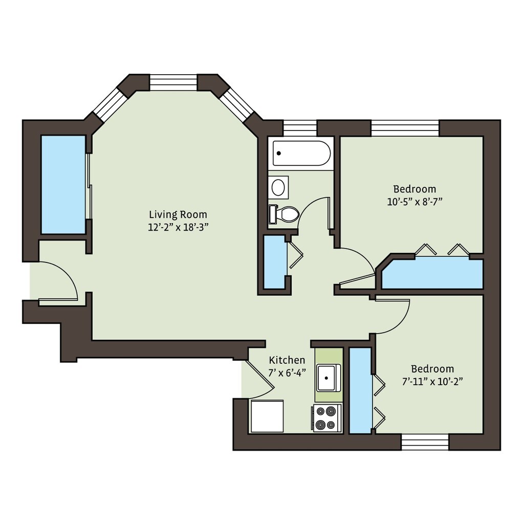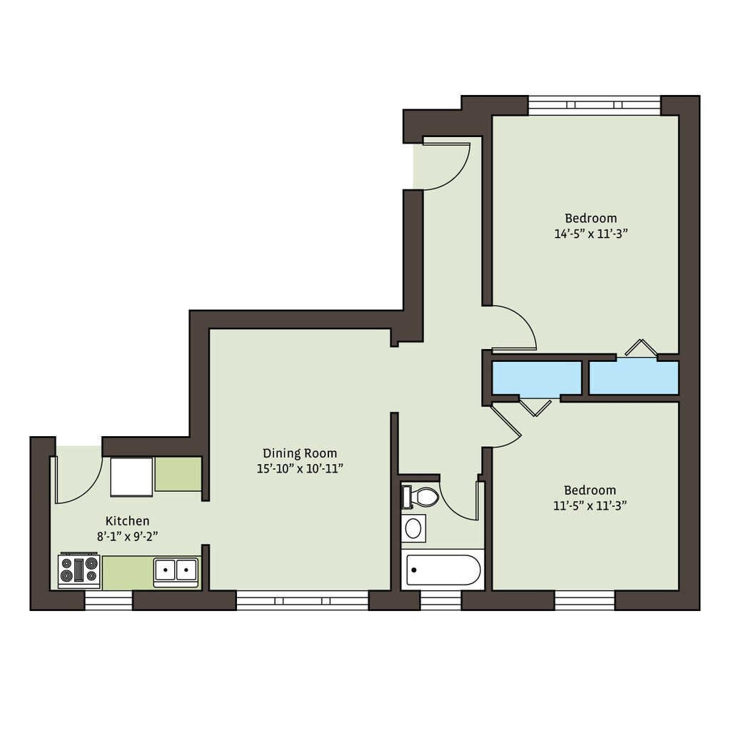 2 Beds, 1 Bath, 715-719 sq ftModel Gallery
