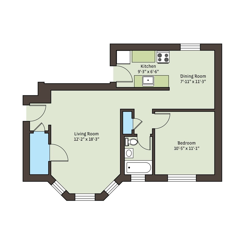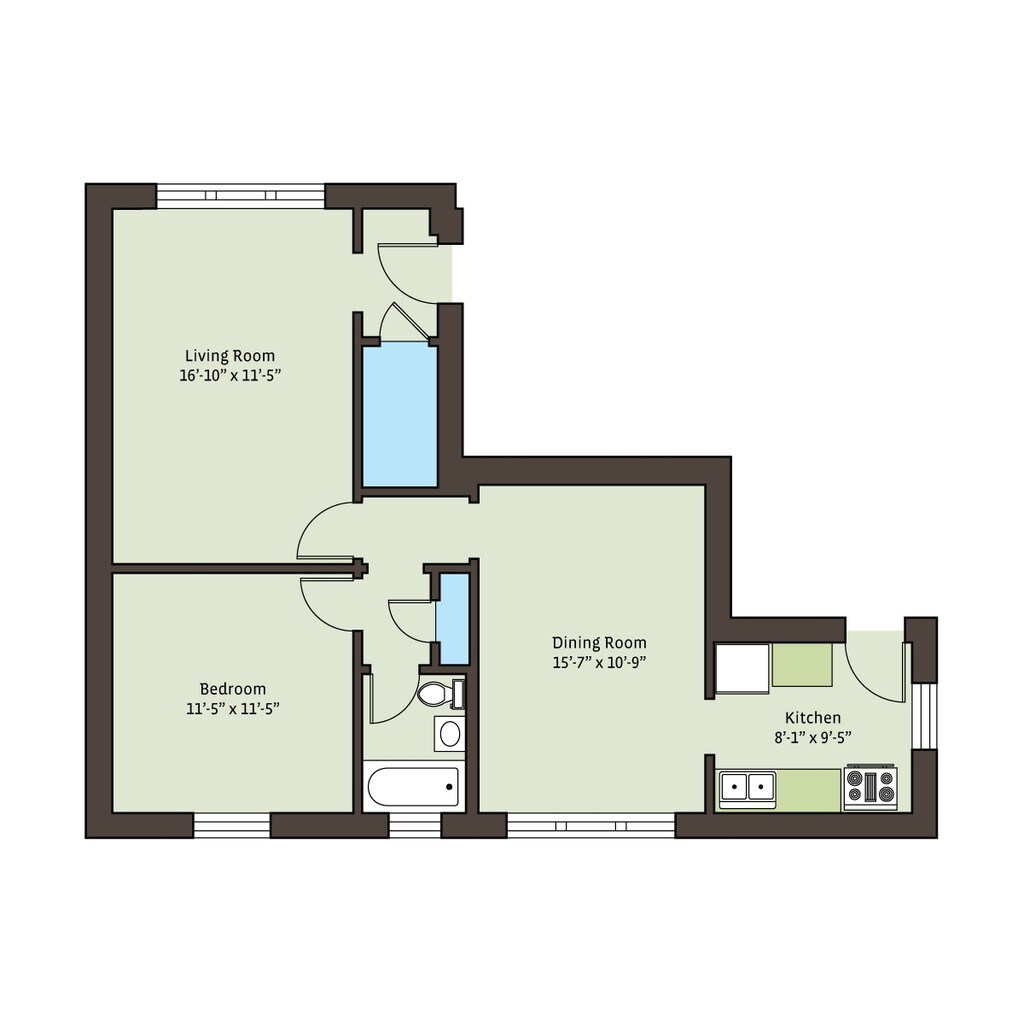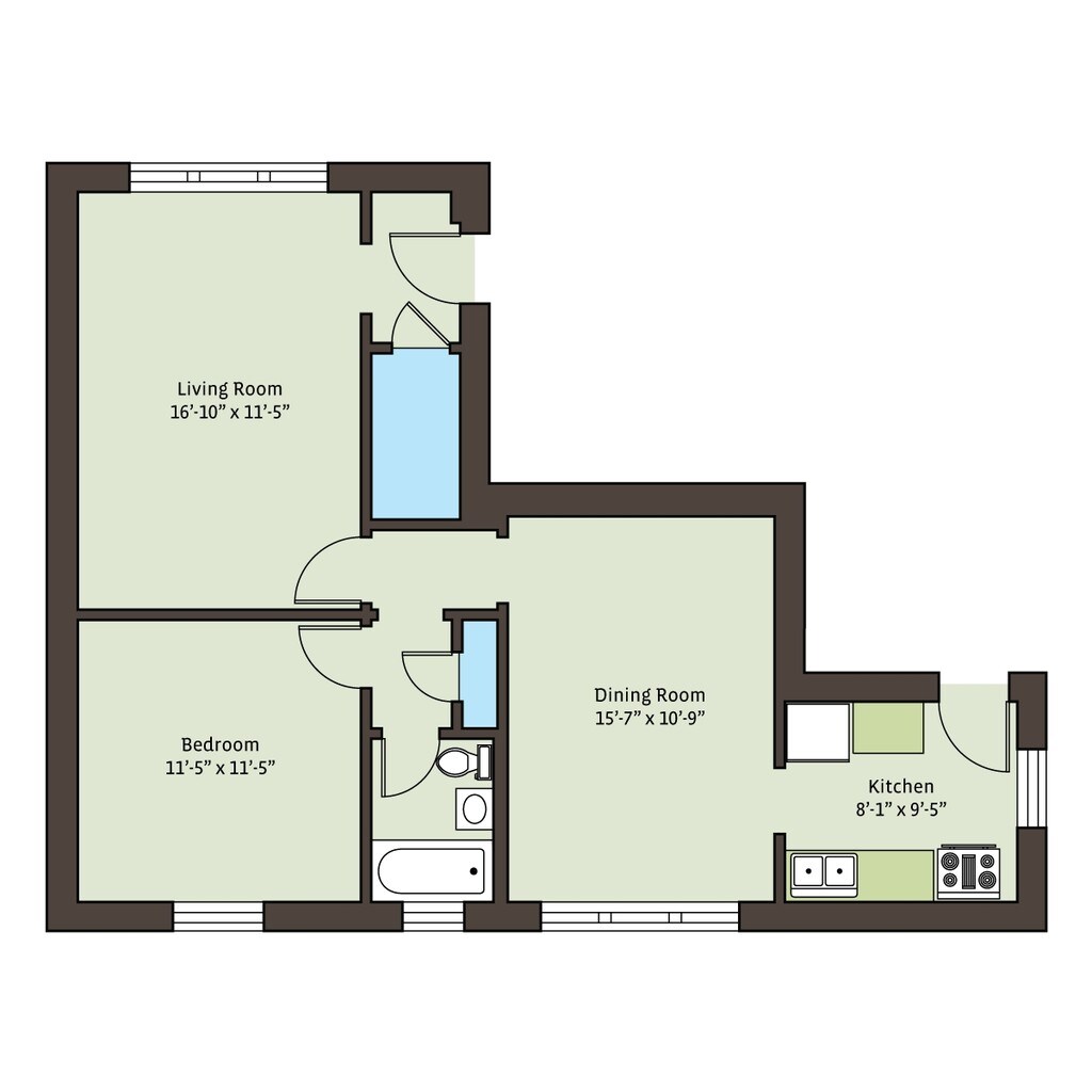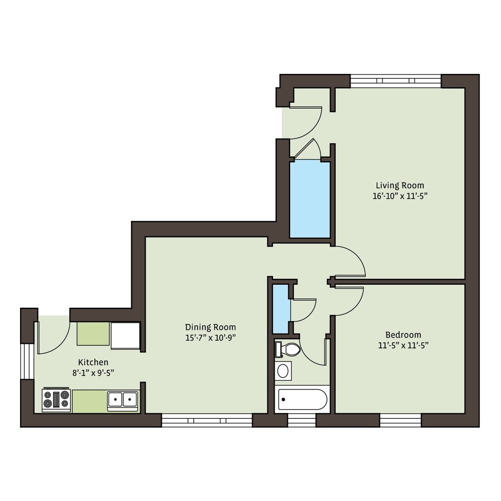 1 Bed, 1 Bath, 588 sq ftModel Gallery